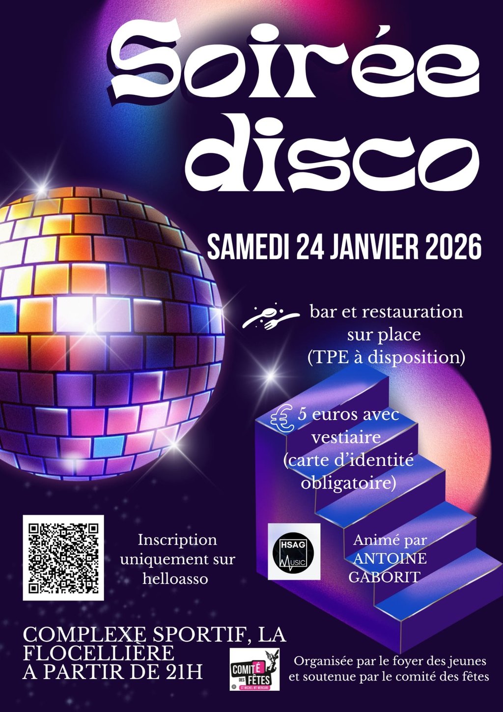 Le foyer des jeunes et le comité des fêtes de Saint-Michel-Mont-Mercure organisent une soirée disco le samedi 24 janvier 2026 au complexe sportif du Mont Mercure à partir de 21h.