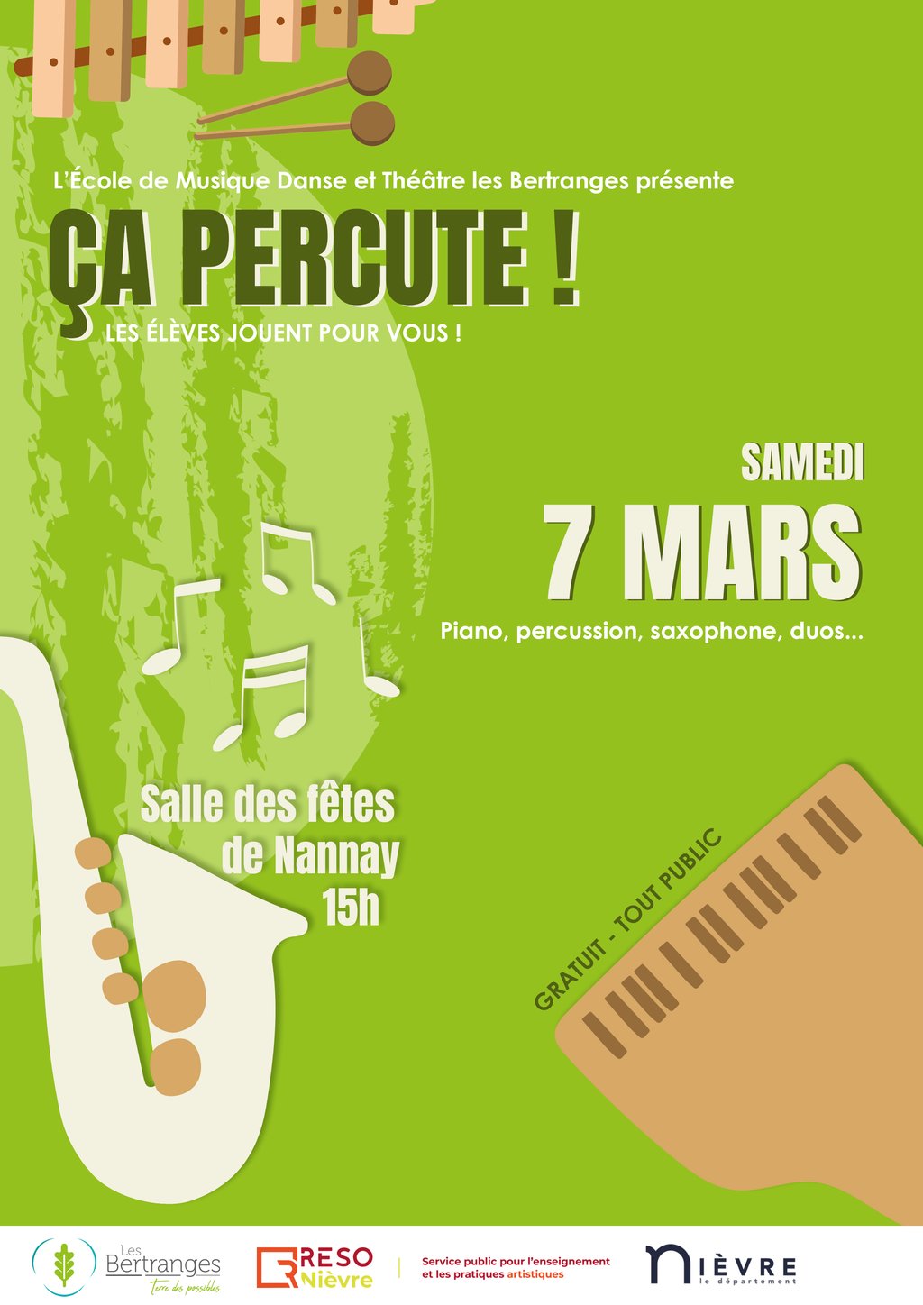 Les classes de piano, percussion et saxophone, ainsi que plusieurs formations en duo, vous proposent un programme varié et accessible à tous.