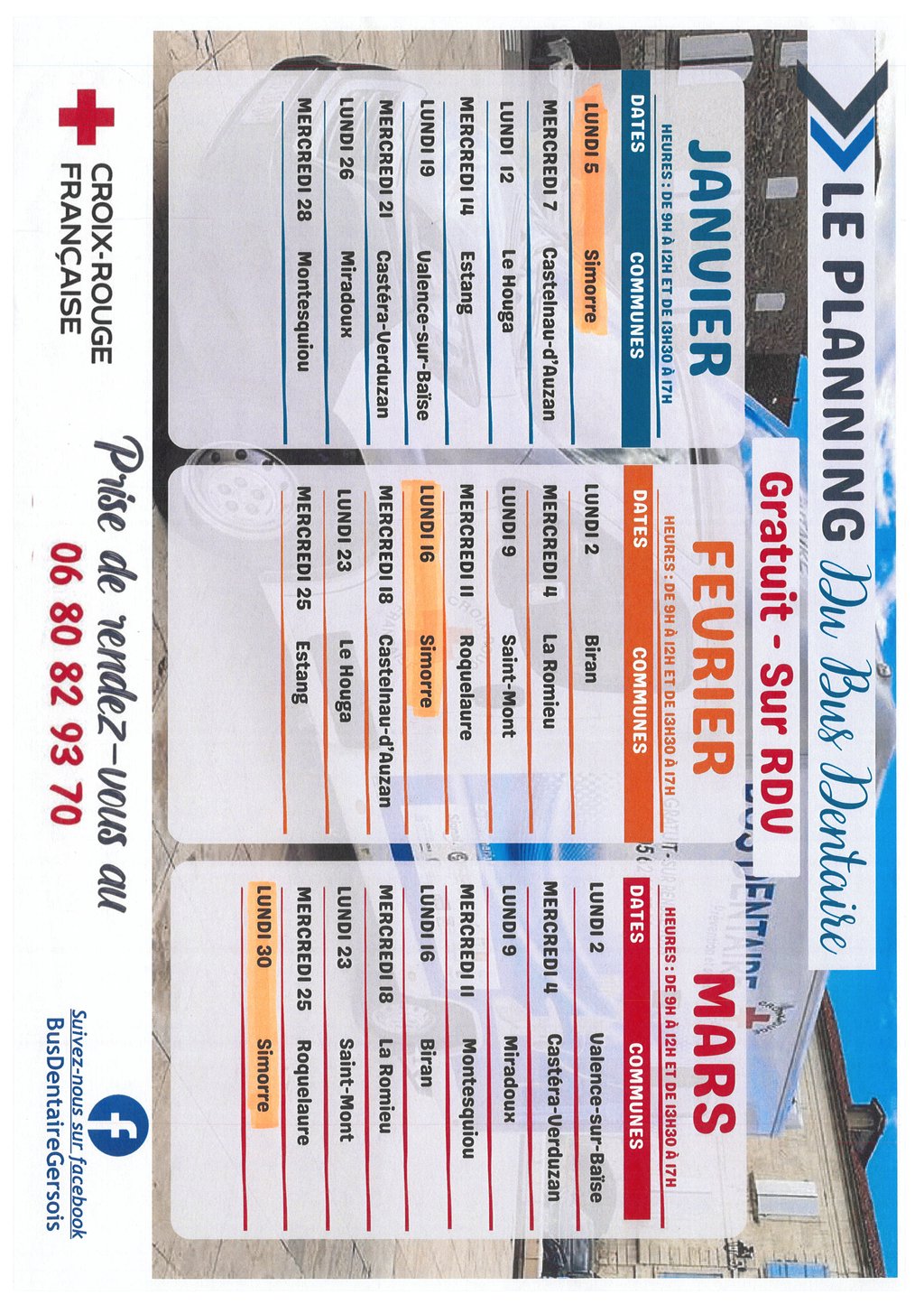 Voici le planning du Bus Dentaire sur la commune de Simorre.