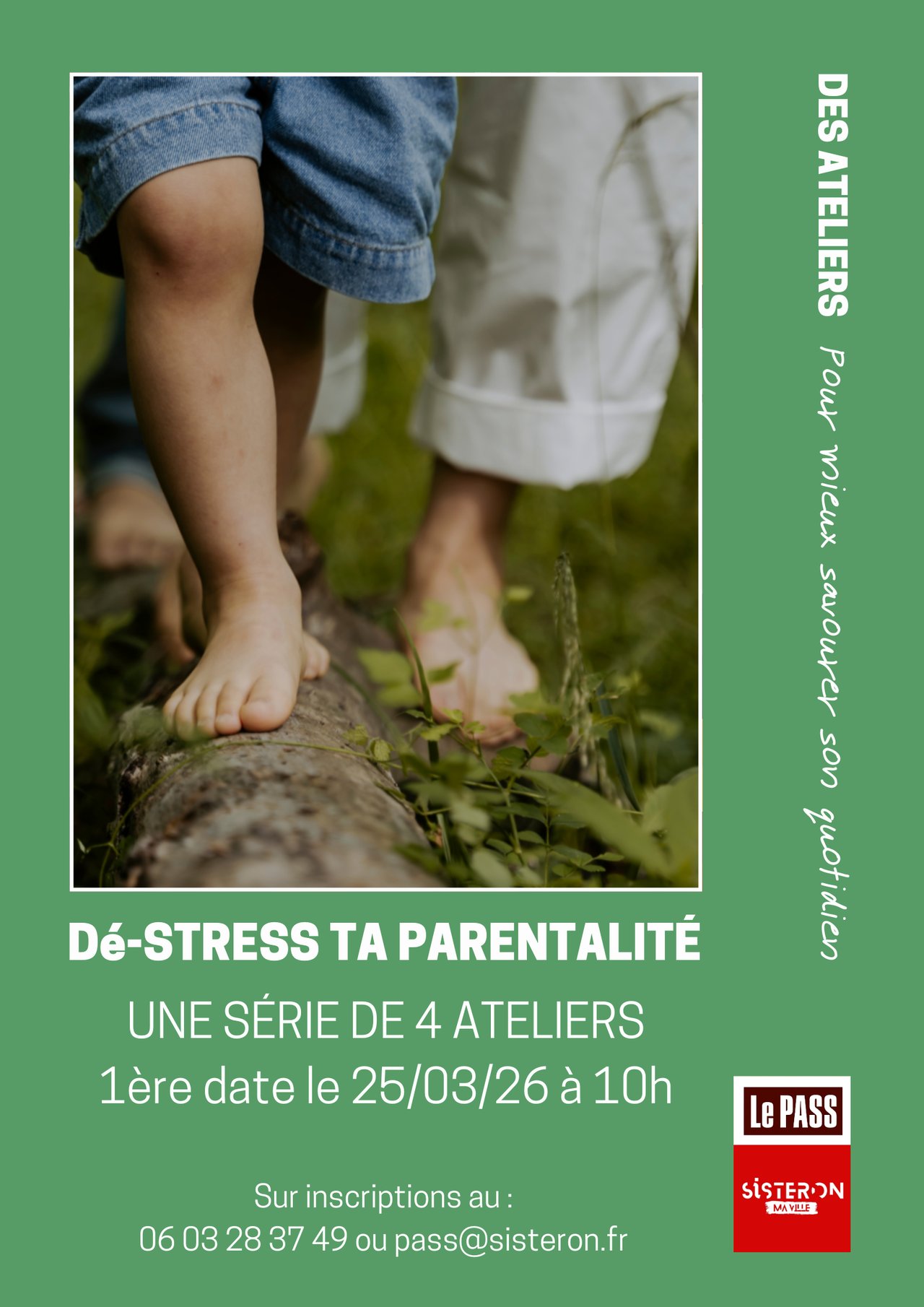 Le PASS Sisteron propose une série de 4 ateliers pour desserrer l’étau du “bien faire”, "questionner l’idéal silencieux de la parentalité parfaite et explorer, pas à pas, une parentalité plus réelle, plus humaine, plus vivante". Un espace pour déposer la pression. Pour revenir au lien. Pour respirer.