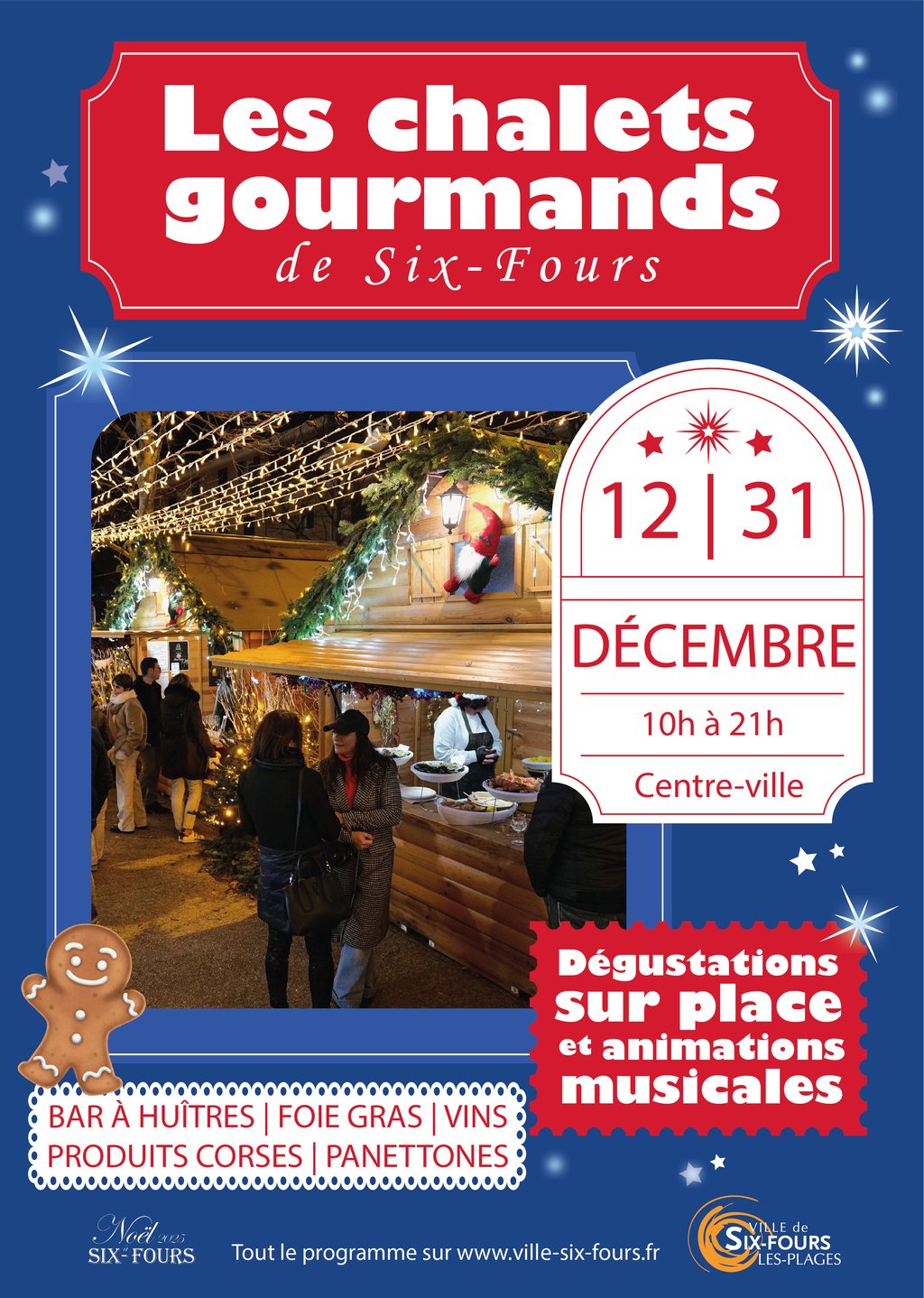 8 chalets gourmands, pour de délicieuses dégustations sucrées et salées (crêpes, gaufres, huîtres, charcuteries et fromages corses, churros, raviolis au canard confit et foie gras, panettone...) accompagnées de vin, bière, chocolat chaud...
