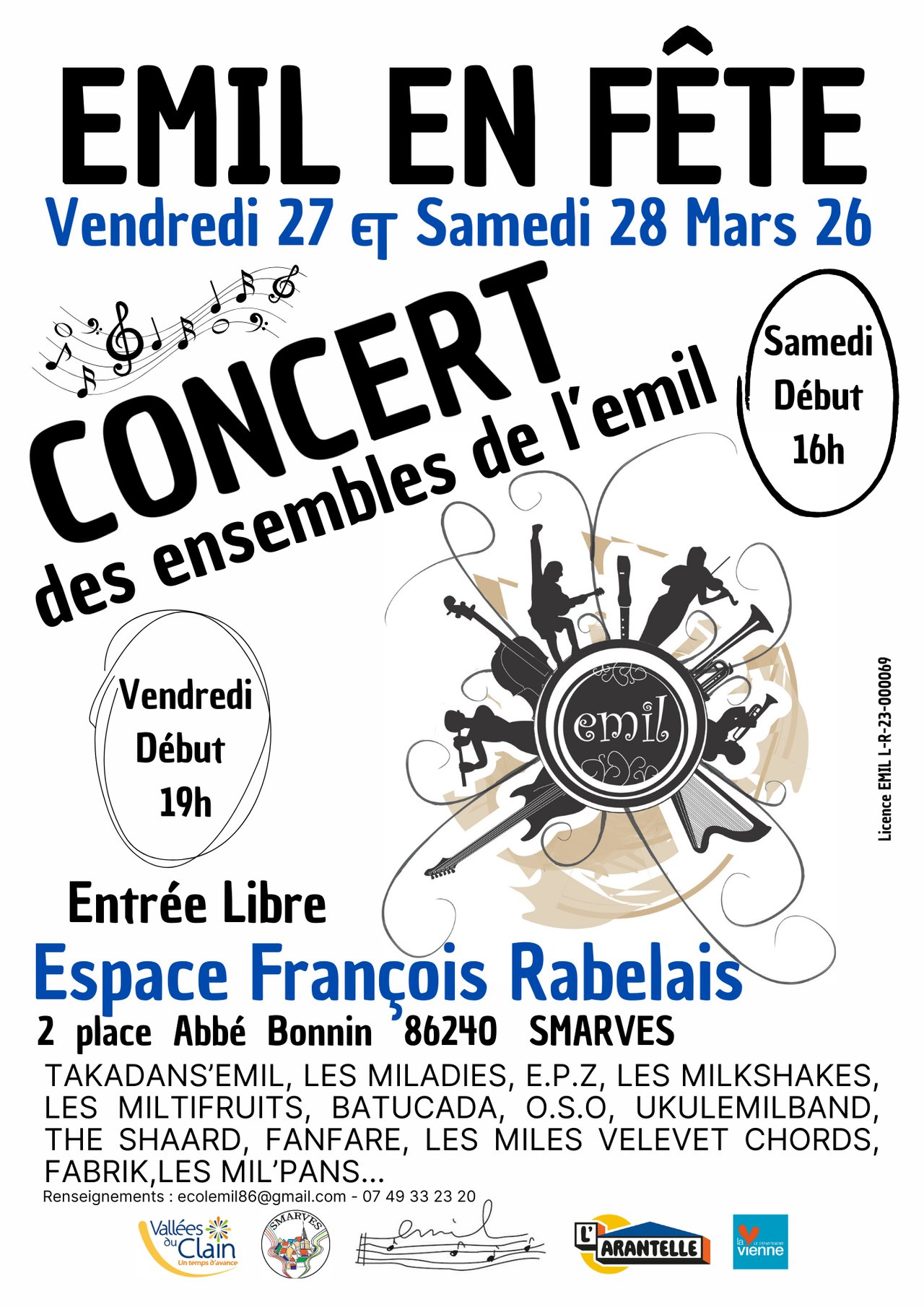 Concerts Gratuits et entrée libre à l'Espace Rabelais : 2 place Abbé Bonin 86 240 SMARVES