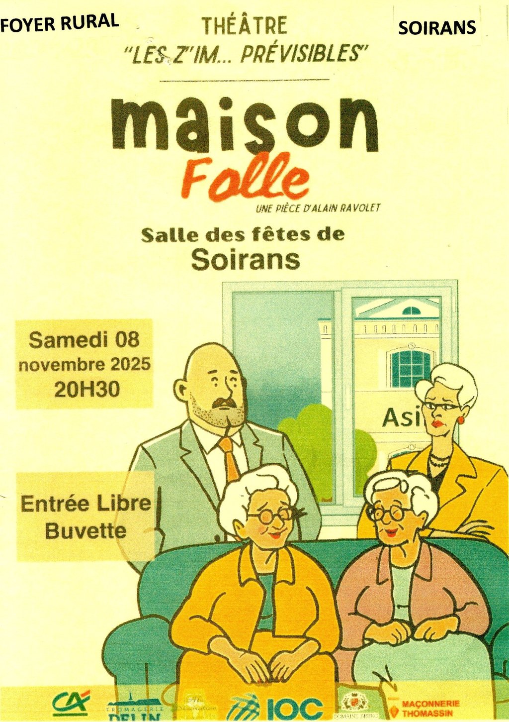 MAISON FOLLE - Soirée théâtre samedi 8 novembre à 20 h 30