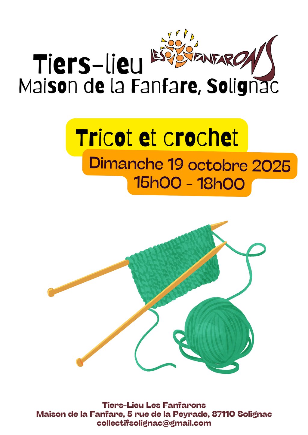 đ§¶â AprĂšs-midi Tricot & Crochet aux Fanfarons â Dimanche 19 octobre 2025