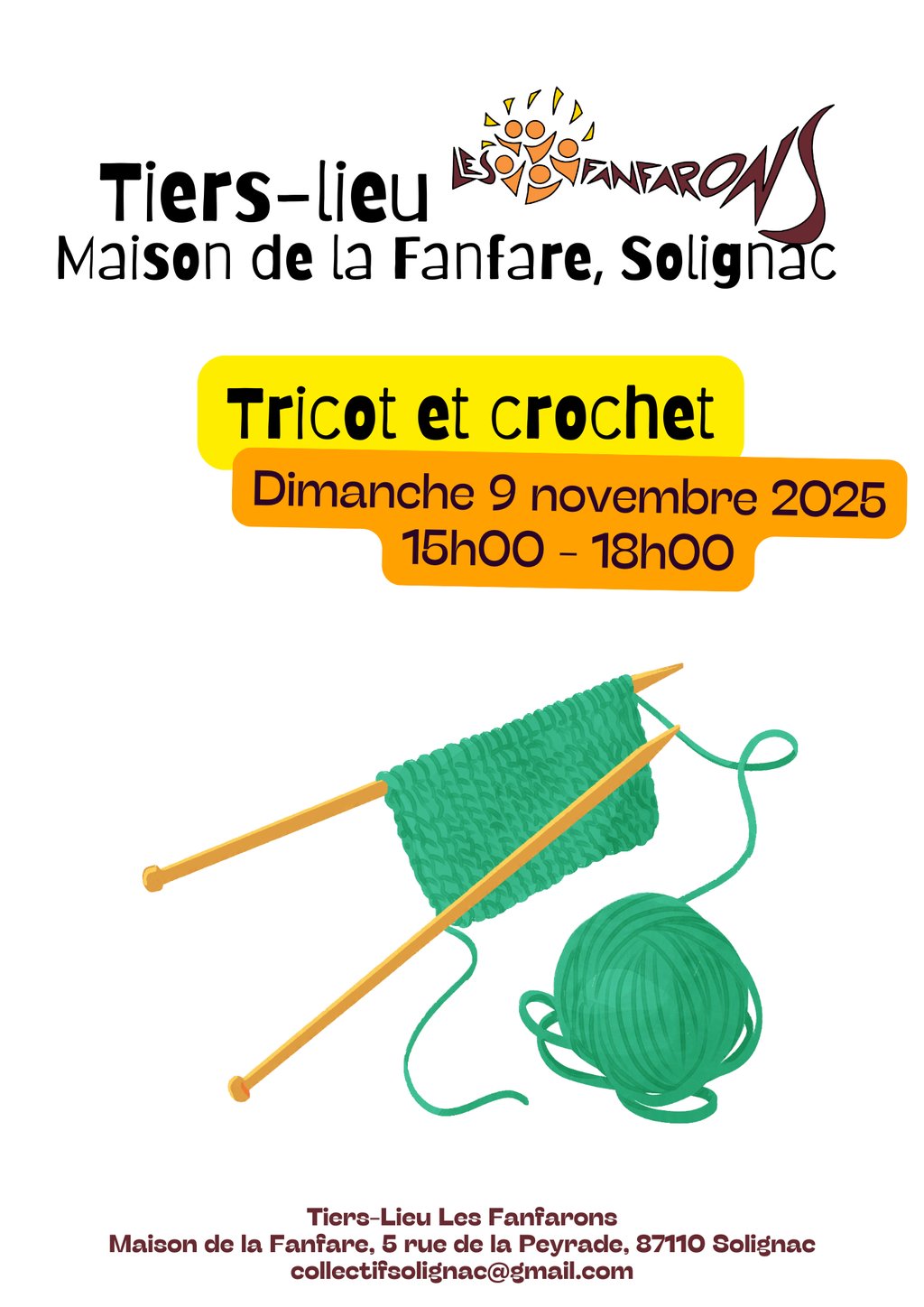 đ§¶â AprĂšs-midi Tricot & Crochet aux Fanfarons â Dimanche 9 novembre 2025