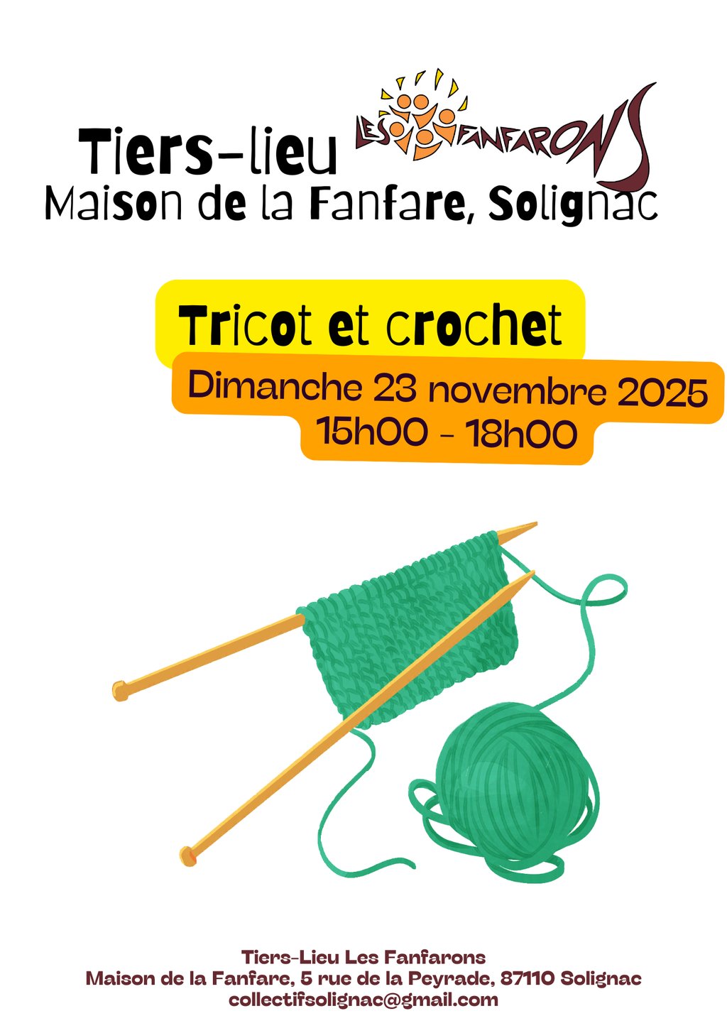 đ§¶â AprĂšs-midi Tricot & Crochet aux Fanfarons â Dimanche 23Â novembre 2025