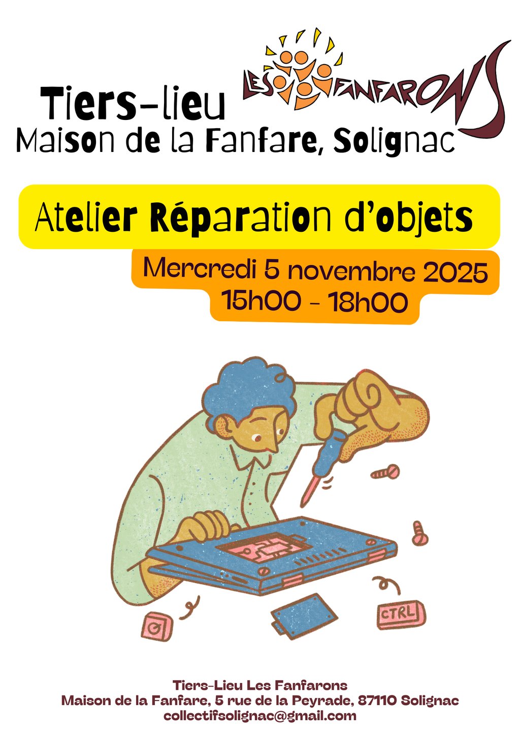 Après-midi: Atelier Réparation d'objets, Tiers-Lieu les Fanfarons