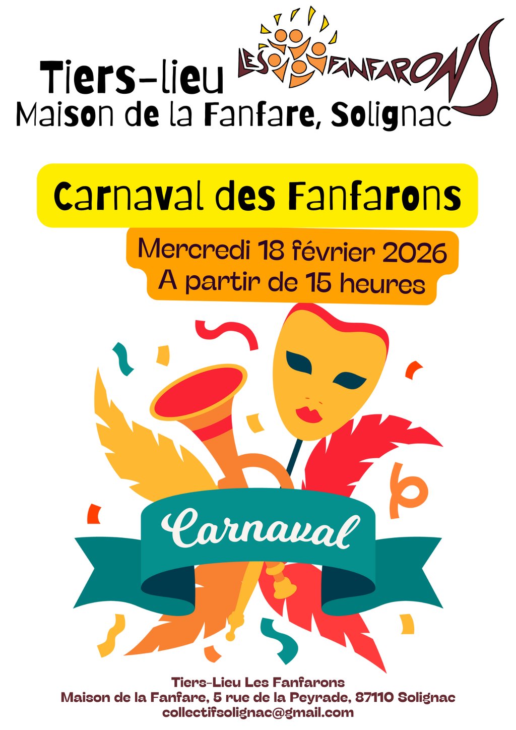 đđ Carnaval aux Fanfarons â Mercredi 18 fĂ©vrier 2026