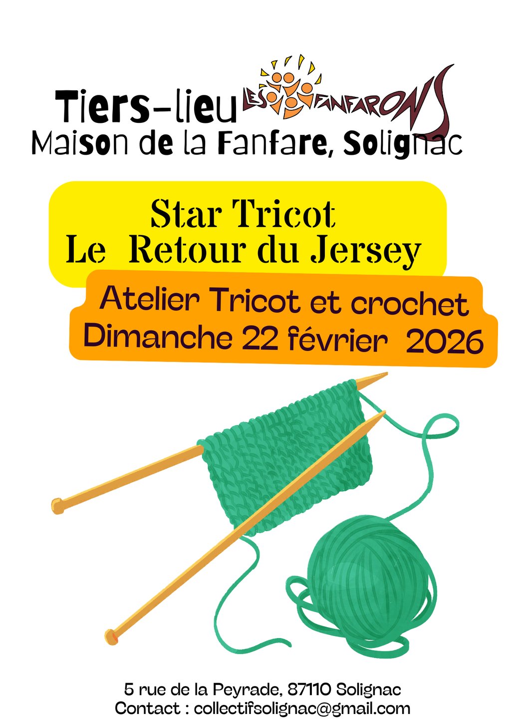 đ§¶â AprĂšs-midi Tricot & Crochet aux Fanfarons â Dimanche 22 fĂ©vrier 2026