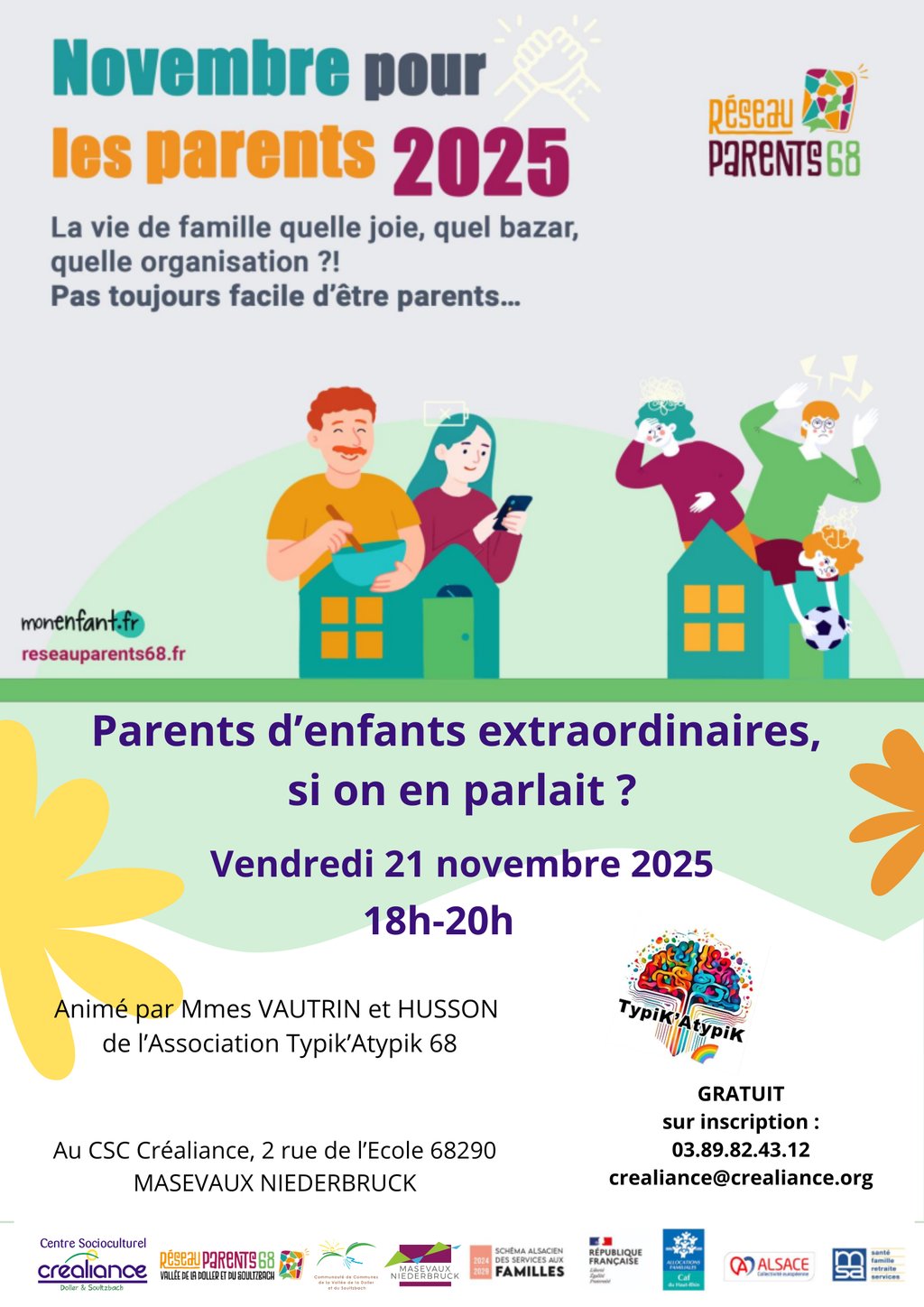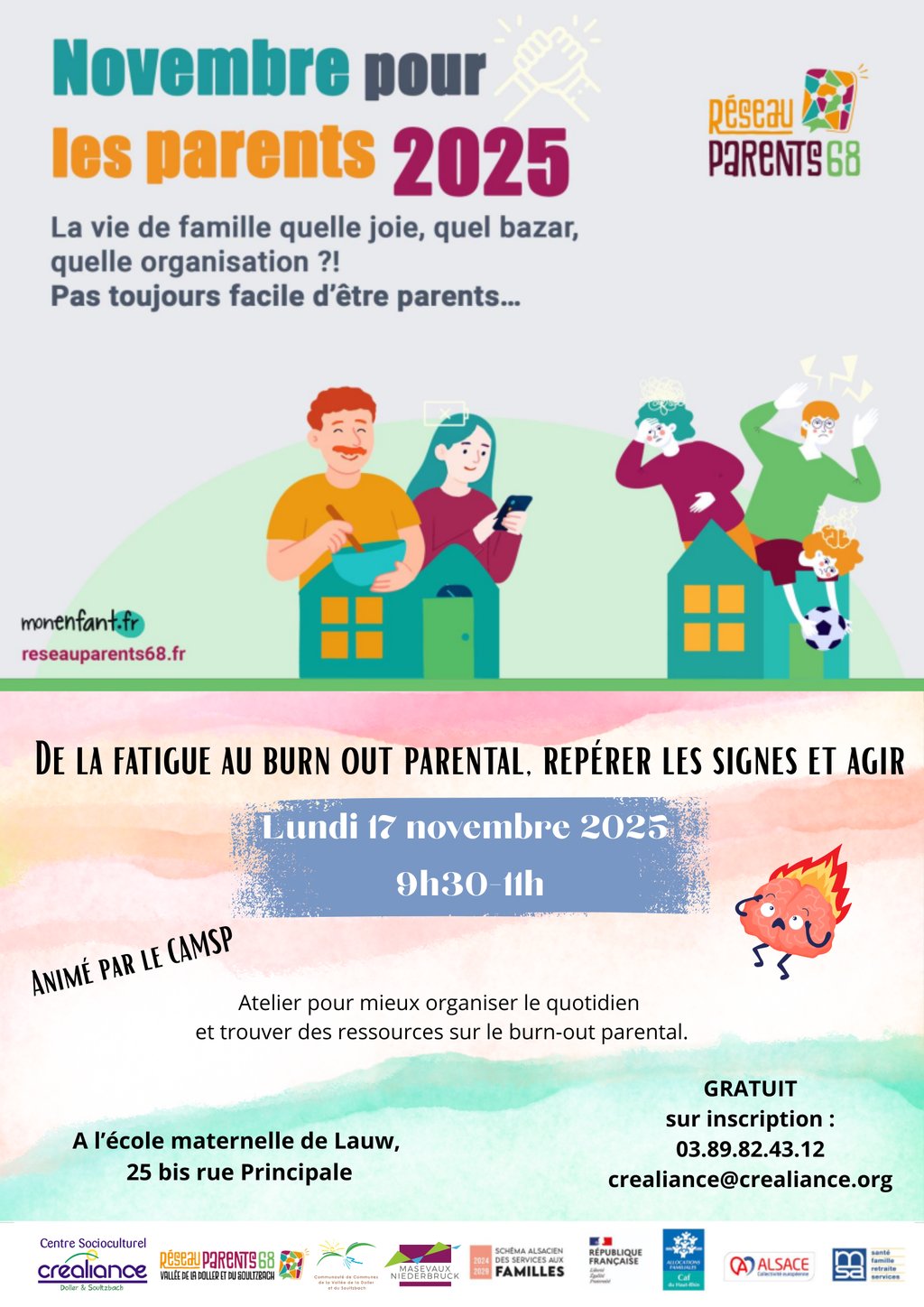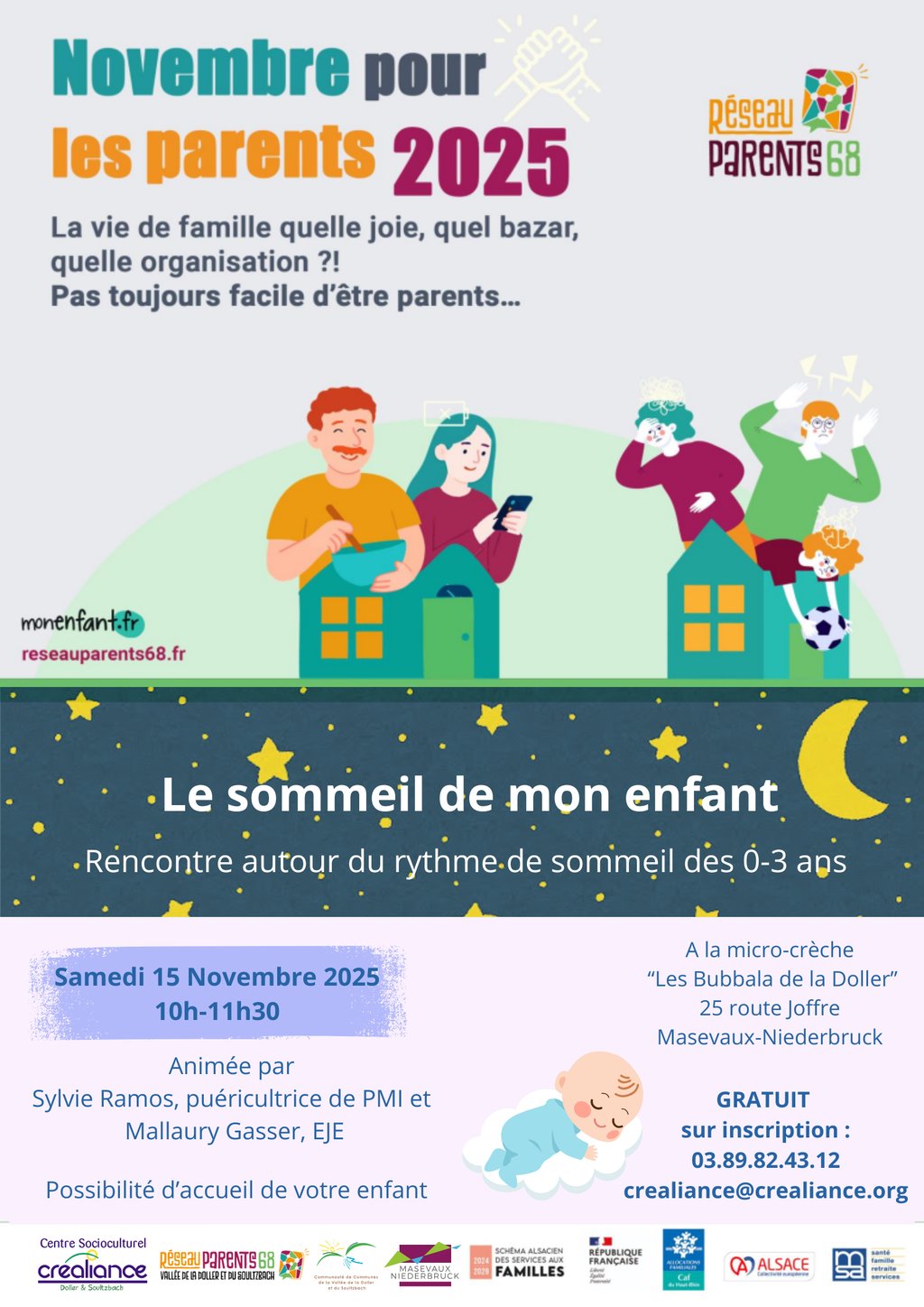 Dans le cadre de l’opération soutenue par la CAF « Novembre pour les Parents », des animations gratuites, à côté de chez vous, sont développées avec les professionnels en direction des parents et des enfants.