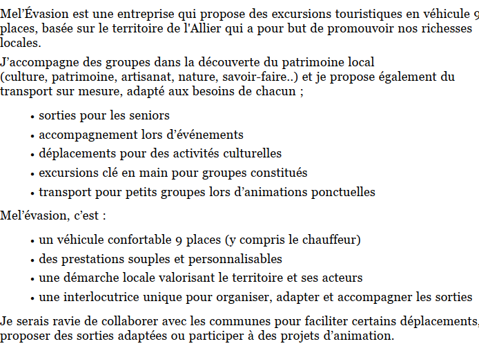 Excursions touristiques en véhicule 9 places - départ depuis Vichy et alentours - transport à la demande - service sur mesure