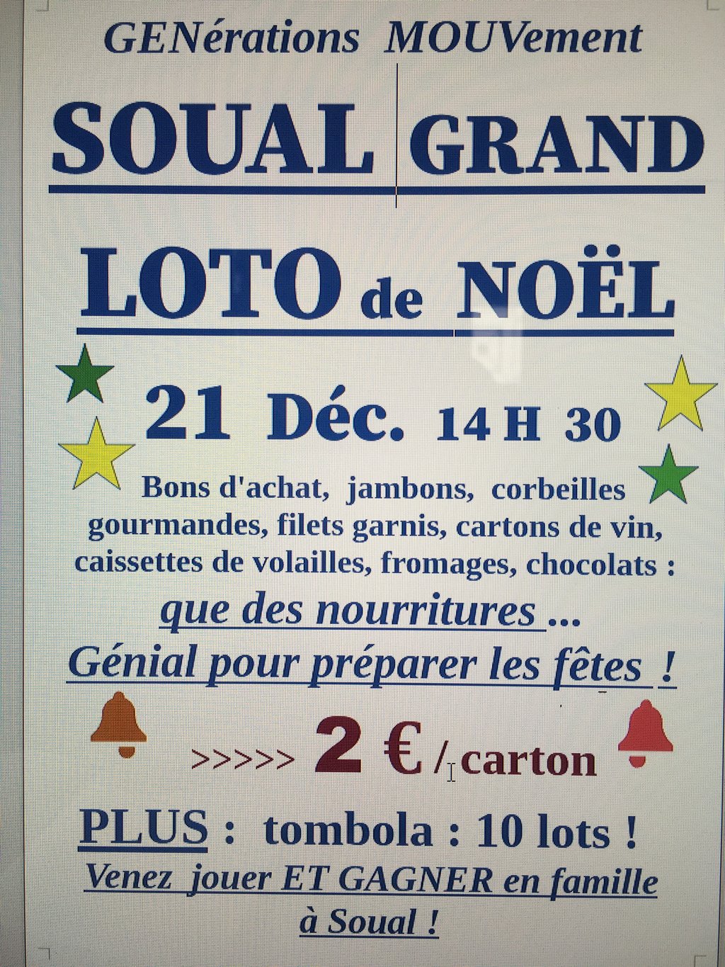 Loto du club Age d'or ; 41 jolis lots, plus 10 lots à la tombola.