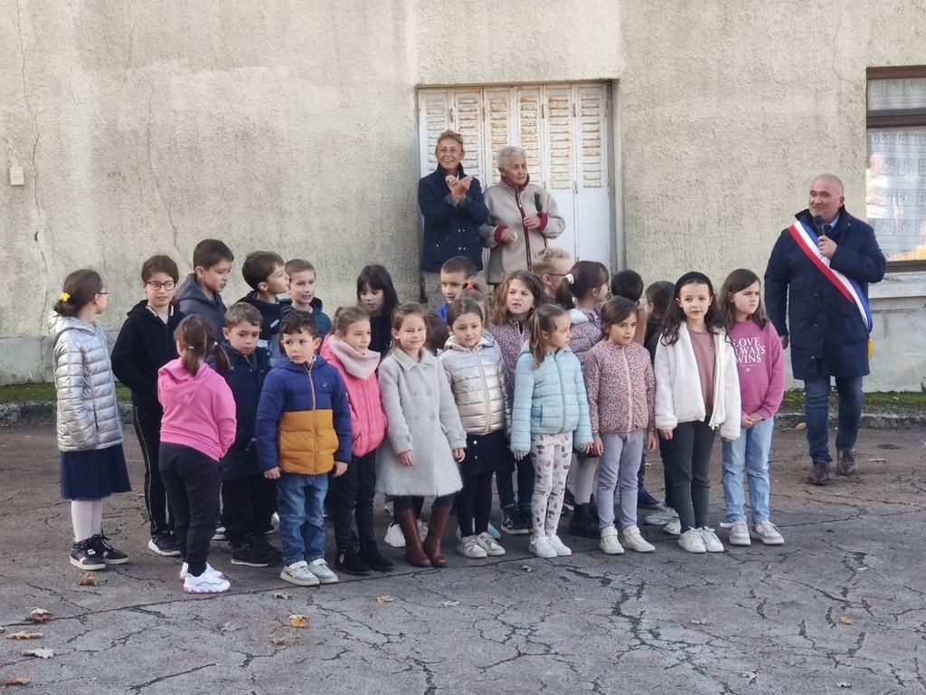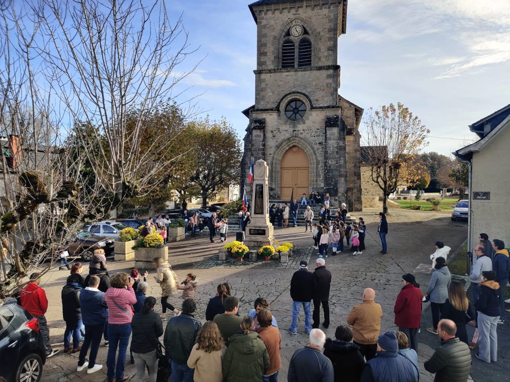 En plus du traditionnel dépôt des gerbes, de la lecture des messages et de l'hommage aux morts pour la France les nombreuses personnes présentes ont pu assister un chant a cappella par les enfants de l'école de Perpezac-le-Noir en symbole de paix.