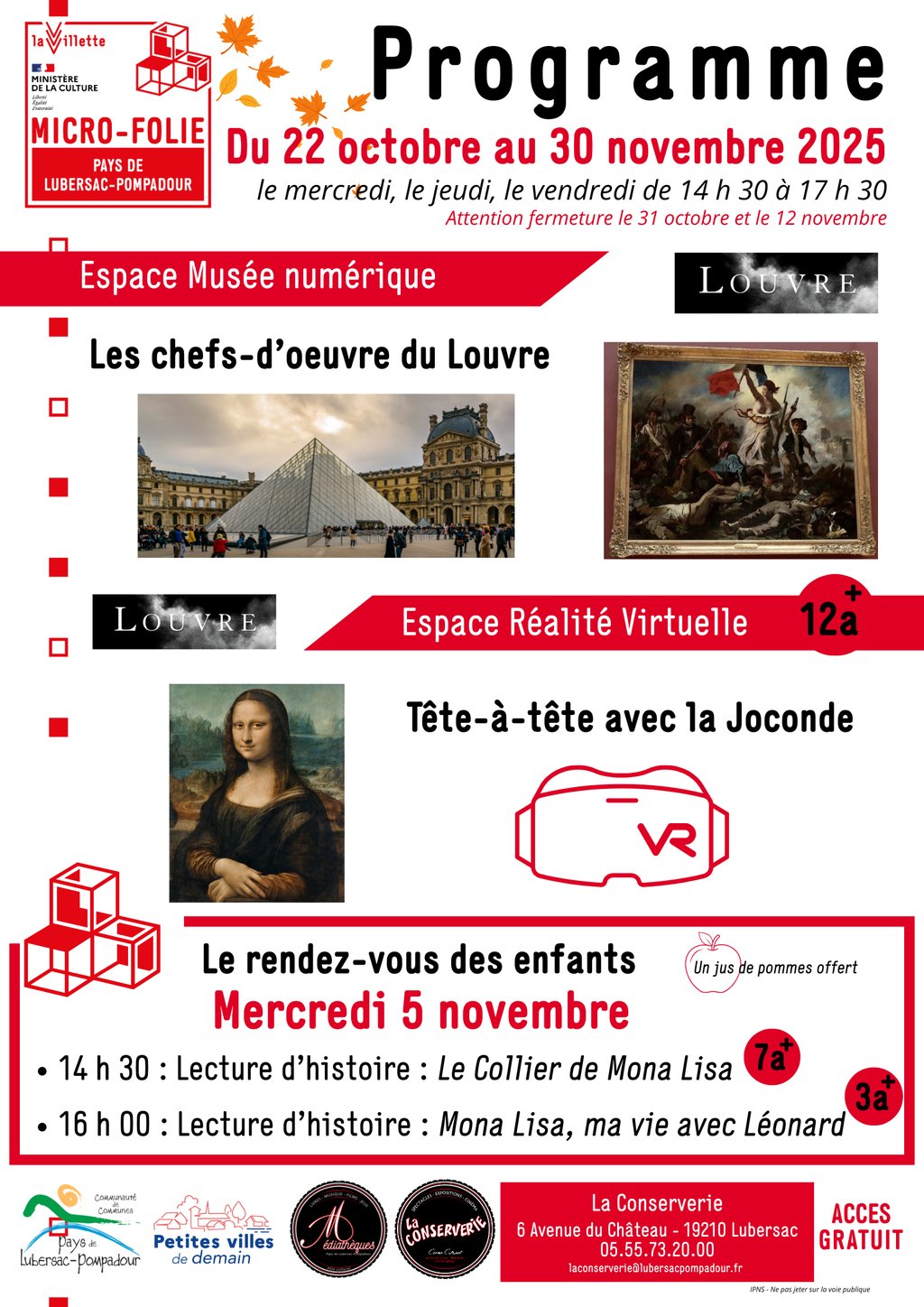 Une Micro-Folie est un espace modulable offrant un accès ludique aux œuvres des plus grands musées nationaux grâce au Musée numérique, cœur du dispositif, qui présente plus de 5 000 œuvres numérisées, issues du réseau de 411 établissements culturels partenaires, qu’ils soient nationaux, régionaux et internationaux. La Micro-Folie propose également des activités complémentaires au Musée numérique : un FabLab, un espace de Réalité Virtuelle, une scène ou un Café Folie (café, bibliothèque, ludothèque).