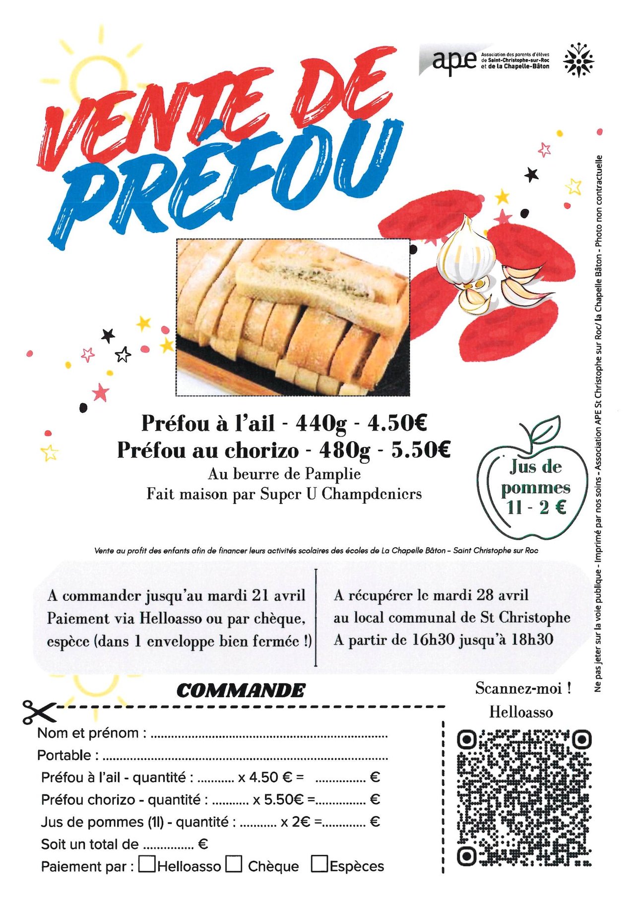 L'APE St Christophe - La Chapelle propose une vente de préfou fabrication maison