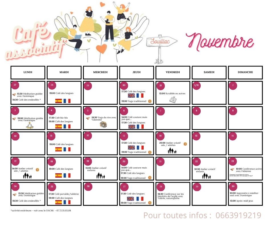 🍁 Le programme de novembre est arrivé au Café Associatif de Souillac ! ☕️
