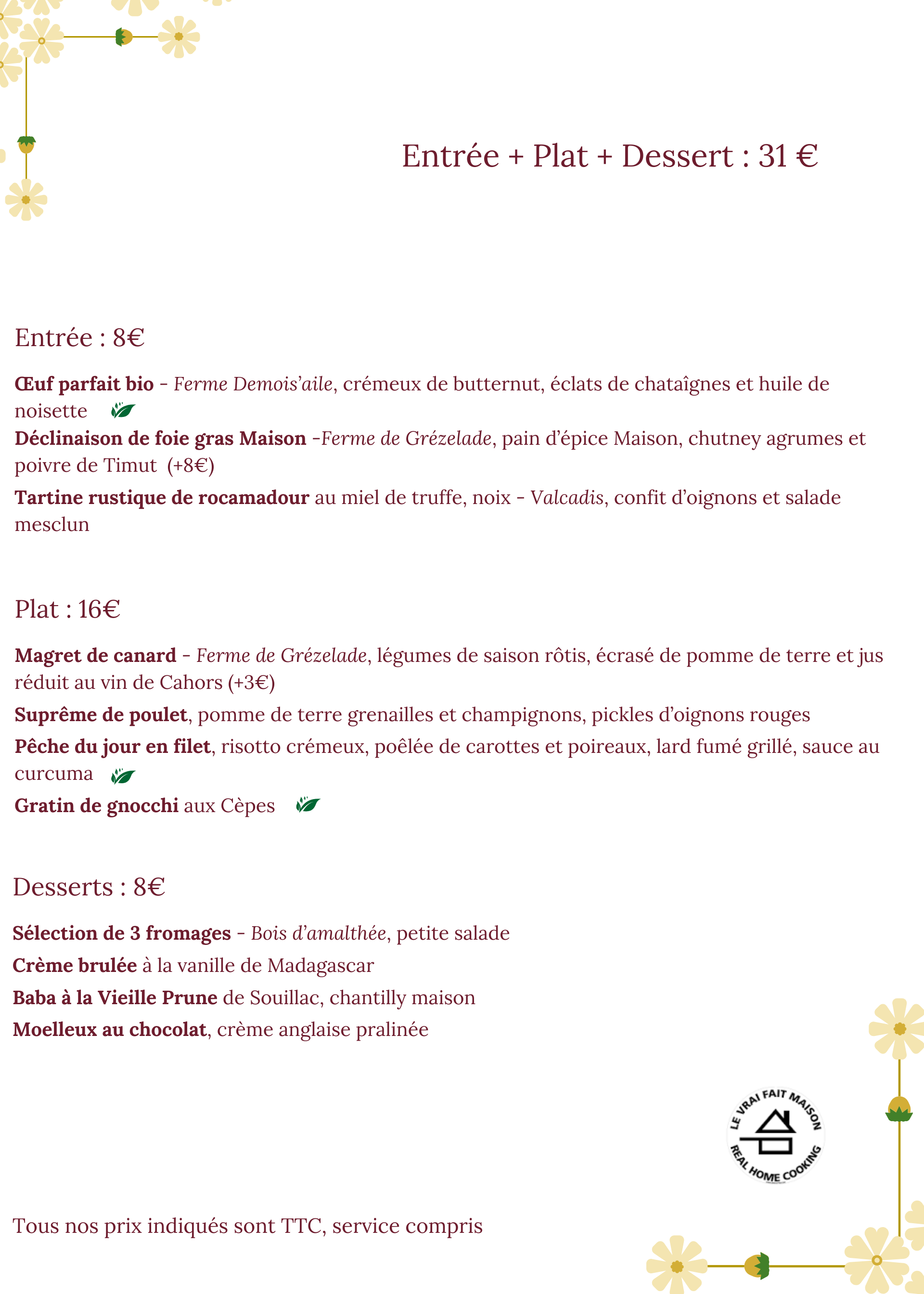 âšEt bien-sĂ»r toujours notre carte du moment, proposĂ©e tous les midis et soirs de la semaine.