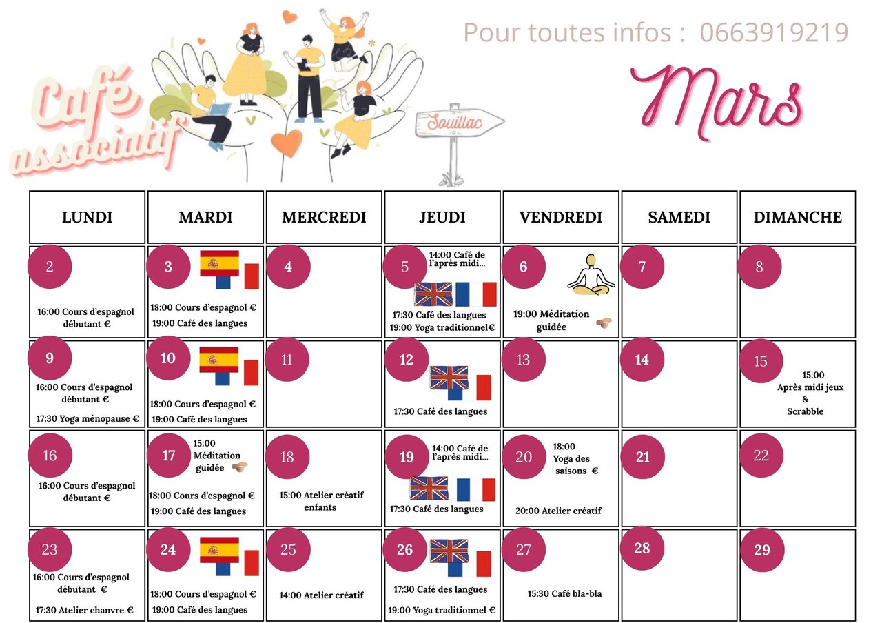 - Sur inscription au 0663919219 ou par mail cafeasso@laposte.net