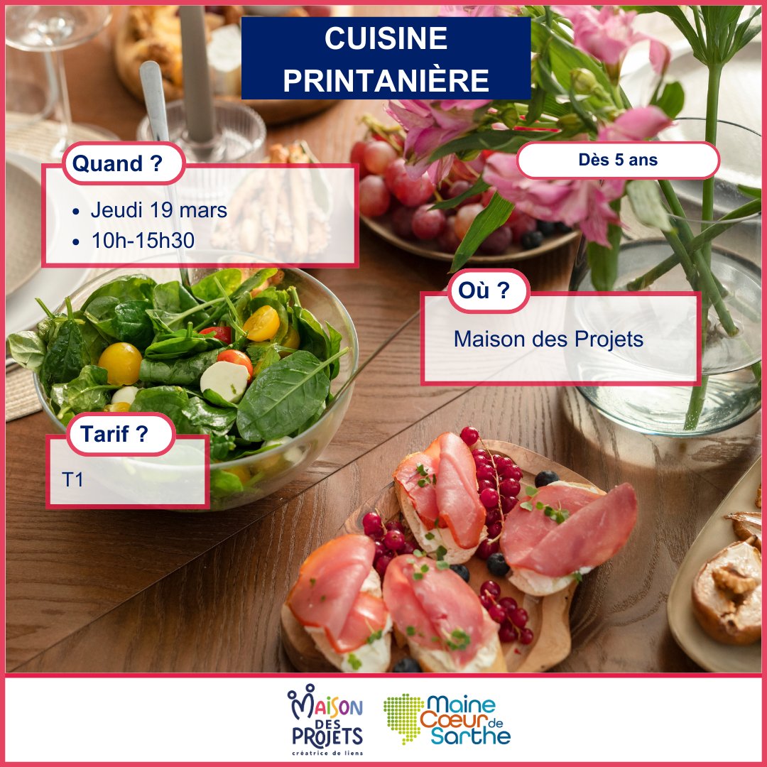 La Maison des Projets propose un atelier cuisine printanière le jeudi 19 mars de 10h à 15h30.