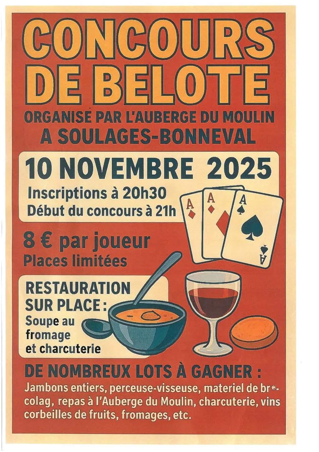 Concours de belote organisé par l'Auberge du Moulin à Soulages-Bonneval.