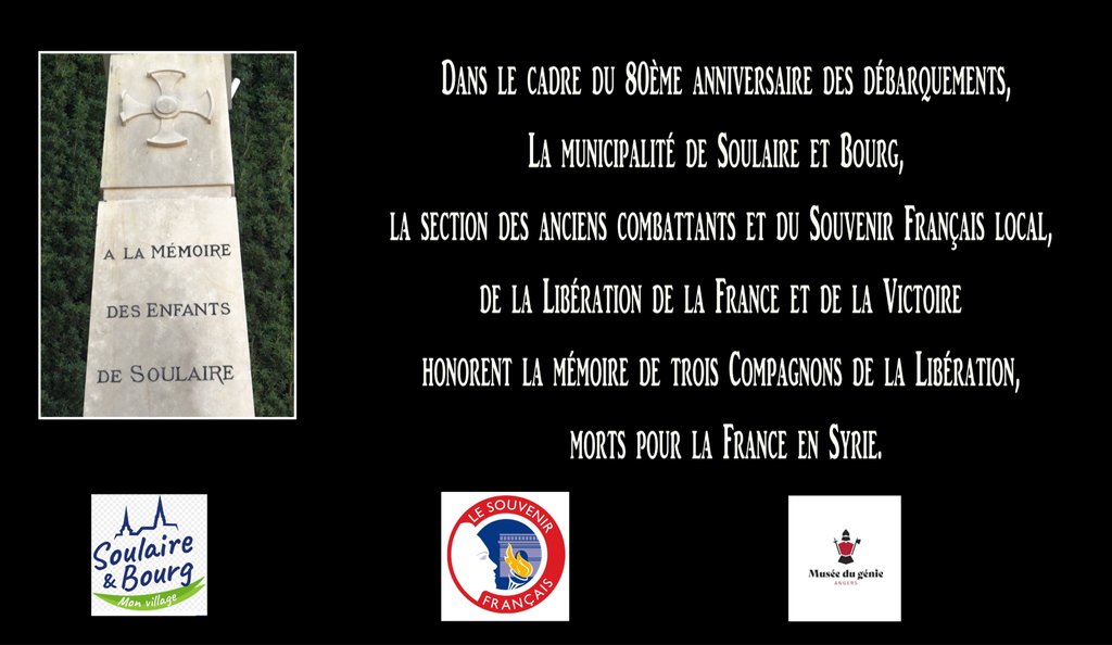 La municipalité de Soulaire et Bourg, l'association des Anciens Combattants et le comité local du Souvenir Français vous invitent à la projection du documentaire de l'opération mémorielle des Journées d'Hommage à Harry de Villoutreys, du 07 et 08 novembre 2025.