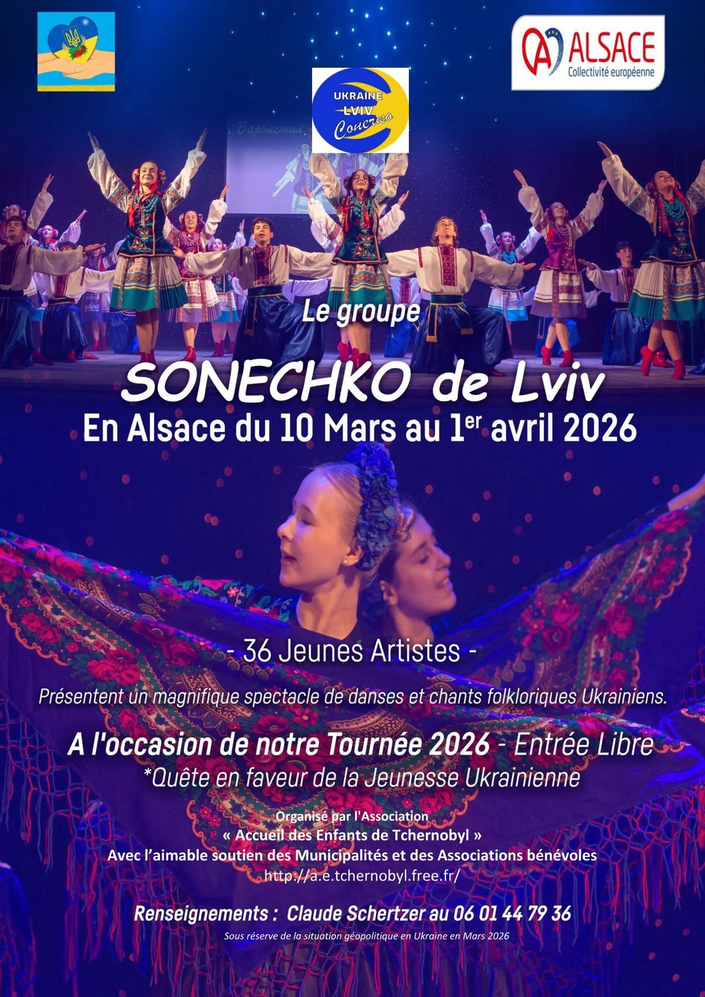 Dans le cadre de sa tournée 2026 en Alsace et dans les régions voisines, le groupe folklorique ukrainien Sonechko fera étape à Soultzmatt.