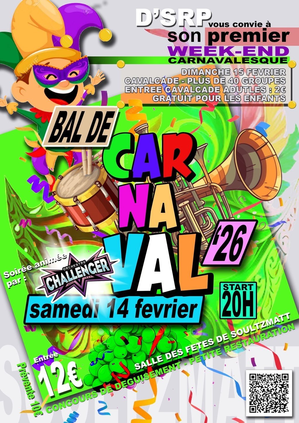 D'Sultzmatter Riwerla Putzer organise la première cavalcade carnavalesque de Soultzmatt dimanche 15 février à partir de 14 h 14, au départ de la Rue d'Osenbach.