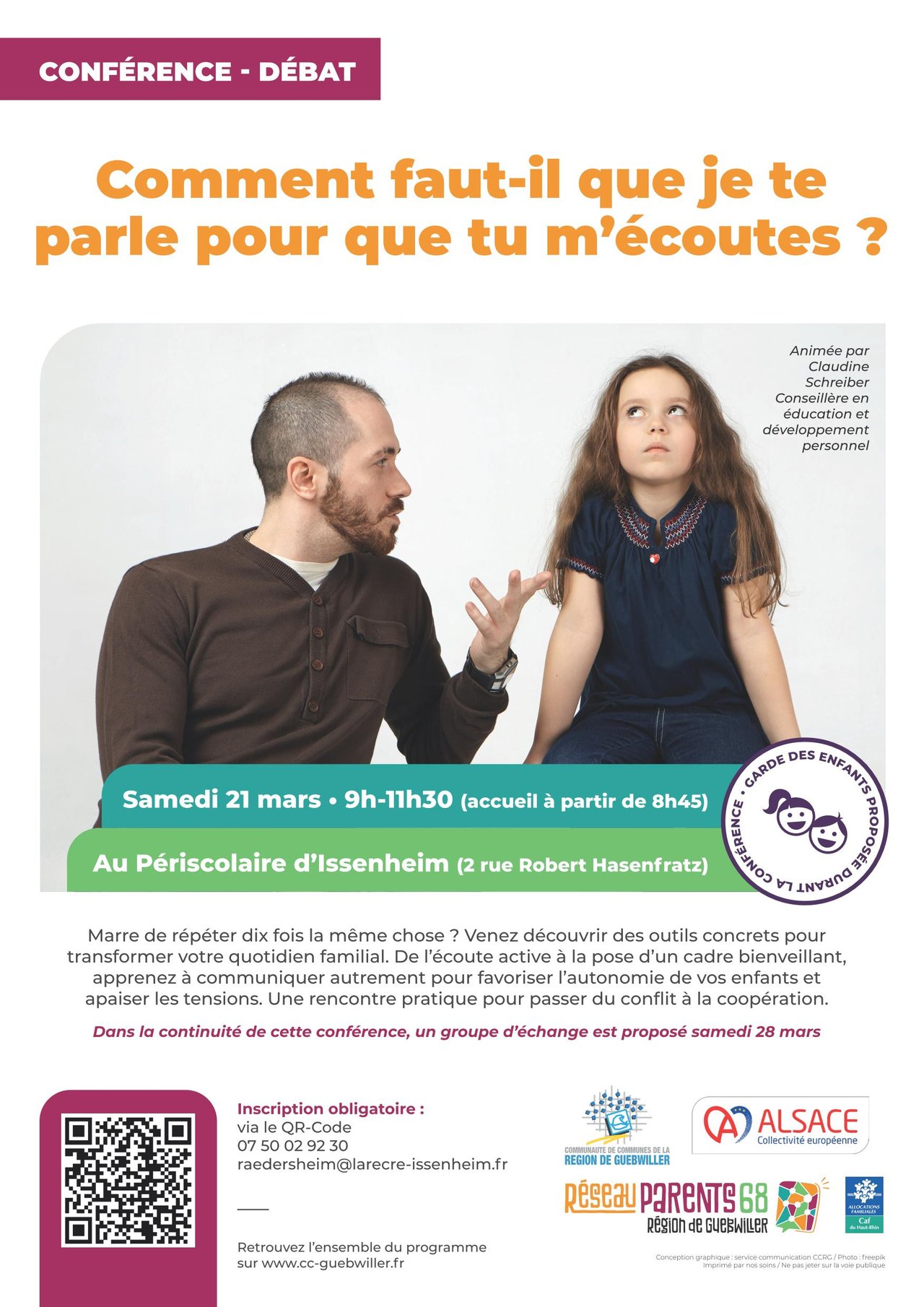 Conférence - Débat samedi 21 mars de 9 h à 11 h 30 (accueil à partir de 8 h 45) au périscolaire d’Issenheim. Garde des enfants proposée durant la conférence.