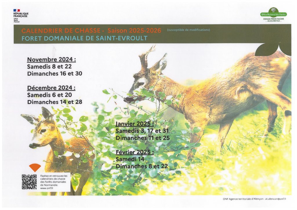 CALENDRIER DE CHASSE EN FORÊT DOMANIALE - SAISON 2025/2026