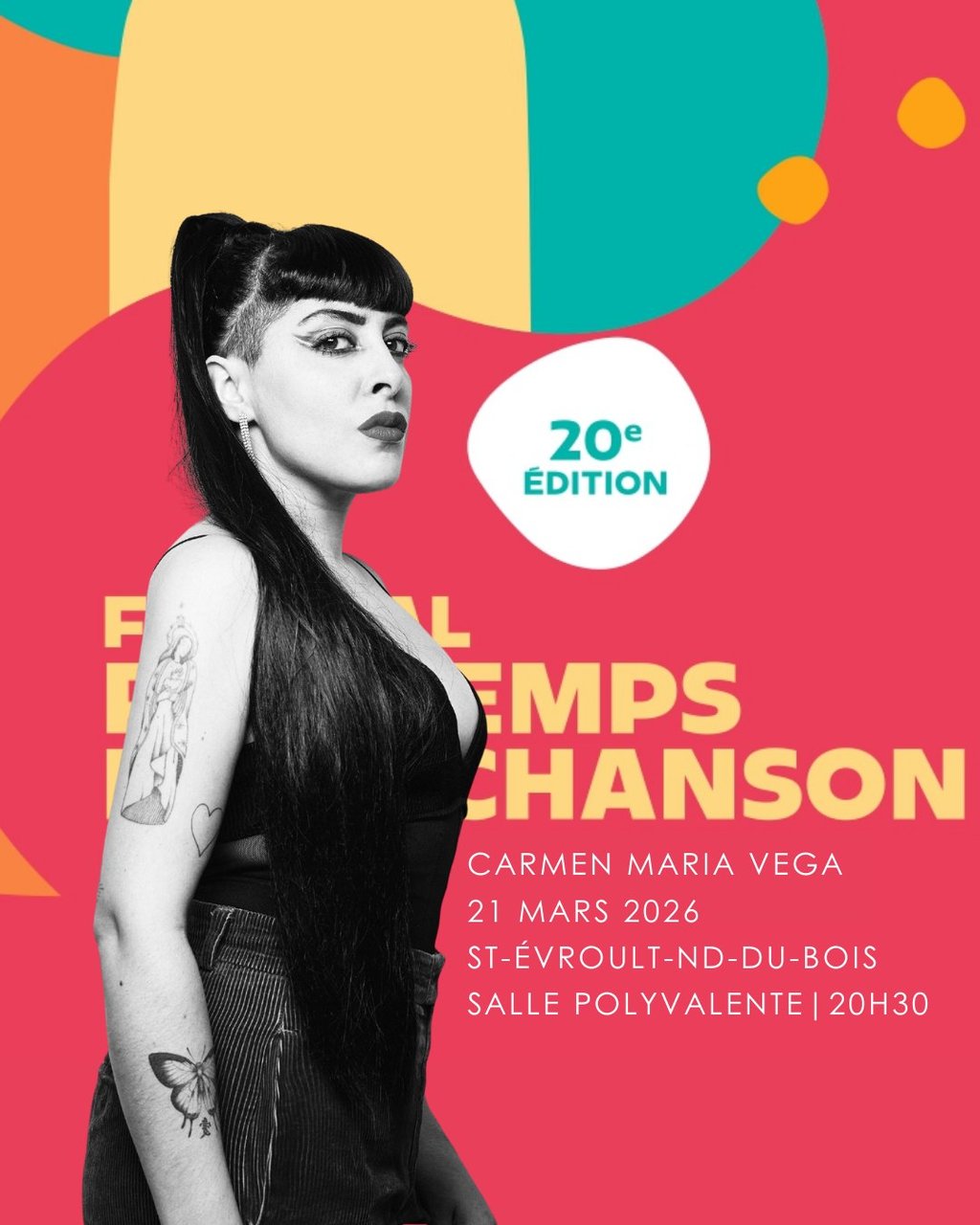 Plus libre et audacieuse que jamais, elle revient sur scène avec un concert vibrant, mêlant titres emblématiques et nouvelles créations. En duo avec Antoine Rault, elle explore sans limites les univers du rock, de la chanson et de l’électro, pour un spectacle puissant et résolument contemporain. Le temps d’une soirée, Carmen Maria Vega devient « Carmen Ultra » et promet un moment musical intense, généreux et surprenant.