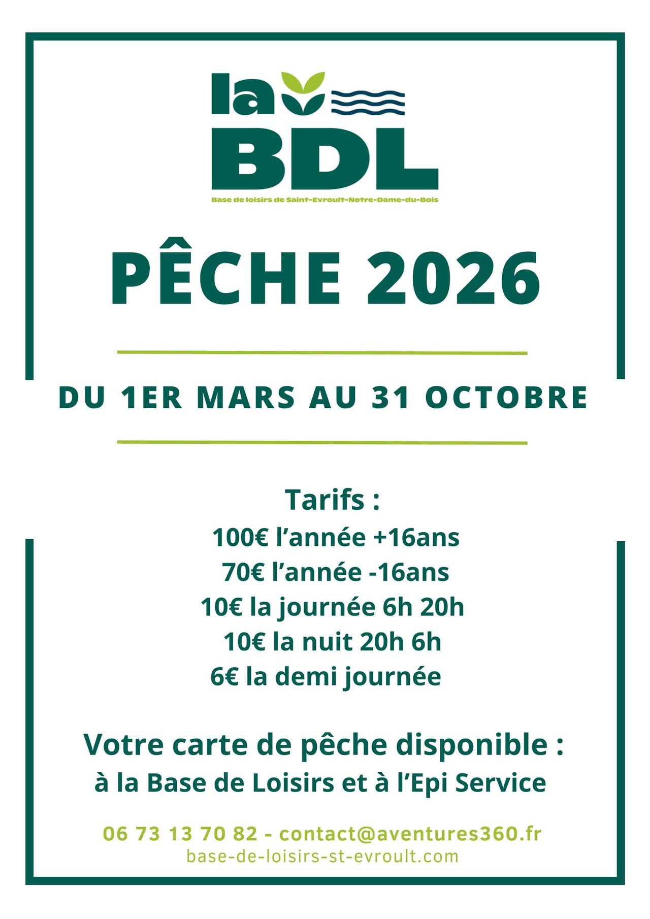 Saison de pêche 2026 à la base de loisirs de ST Evroult ND du Bois