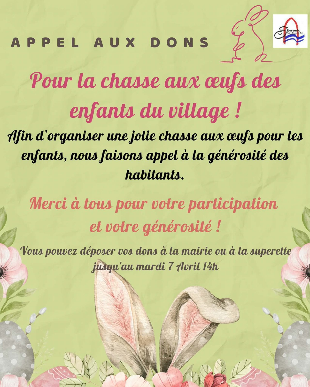 APPEL AUX DONS POUR LA CHASSE AUX OEUFS