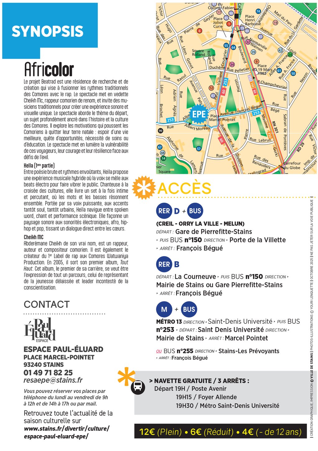Information et réservations : resaepe@stains.fr ou par téléphone au 01 49 71 82 25.