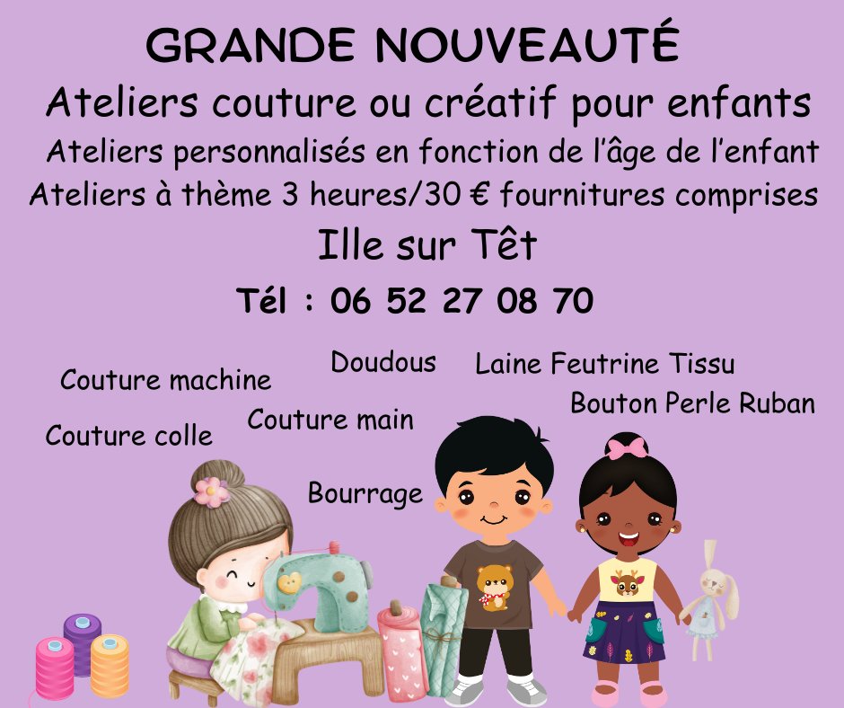 Evolution Couture 66 propose des ateliers couture et créatifs spécialement adaptés aux enfants.🪡
