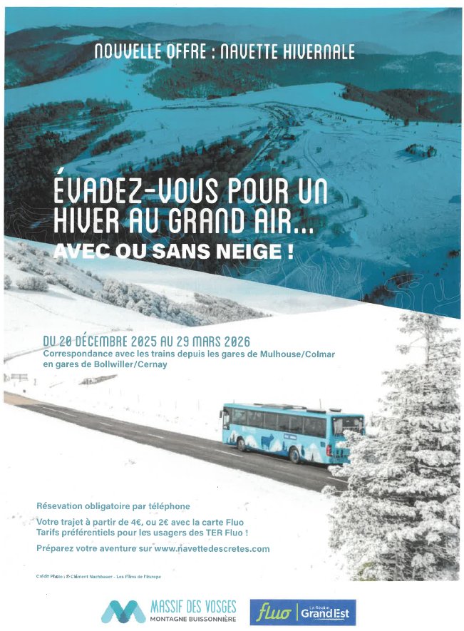 Les navettes hivernales assurant la desserte touristique vers la station du Markstein seront mises en service dès le 20 décembre pour la saison 2025-2026.
