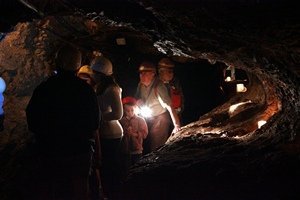 Muni de votre casque, suivez les traces des mineurs et laissez-vous guider dans les 250 mètres de galerie de la Mine Saint-Nicolas.