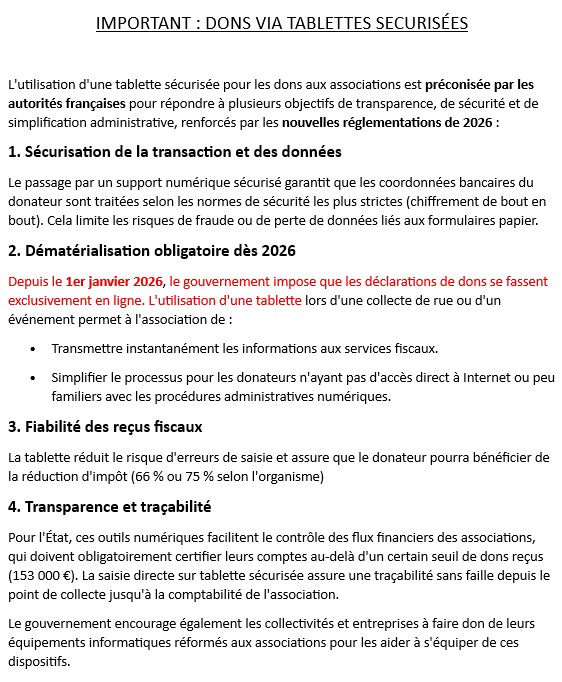 (voir document joint ''dons via tablettes sécurisées'')