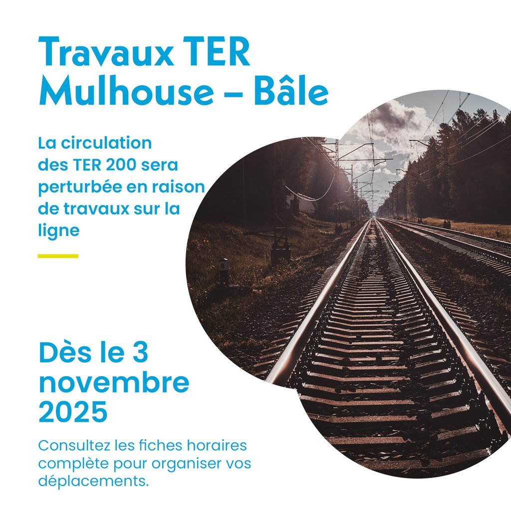 TRAVAUX FERROVIAIRES ENTRE MULHOUSE ET BÂLE À PARTIR DU 3 NOVEMBRE 2025