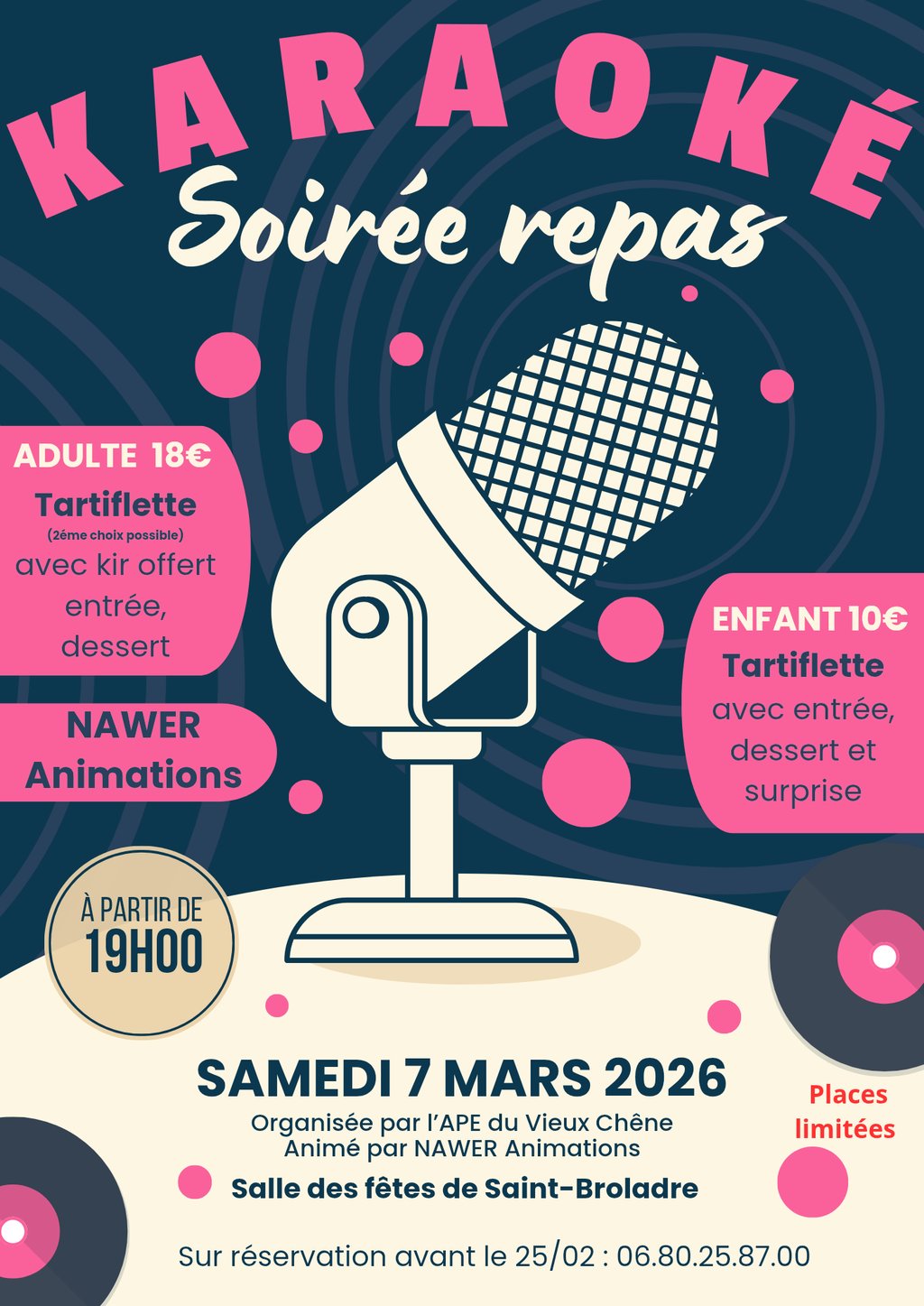 organise un repas karaoké le samedi 7 mars 2026 à partir de 19h à la Salle des fêtes de Saint-Broladre