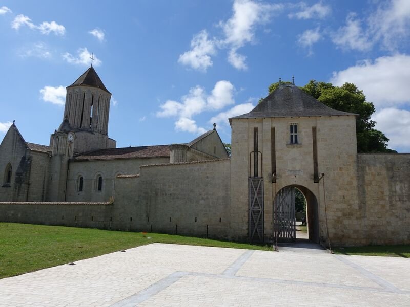 4. Emprunter le chemin de terre à gauche, franchir la Gères sur un petit pont et continuer le chemin sur le chemin jusqu’à arriver sur le D 939. Au carrefour, remarquer à droite le portail XIe siècle du prieuré Saint-Gilles. Édifier par les moines de l’abbaye de Maillezais, il accueillait les pèlerins de Compostelle.