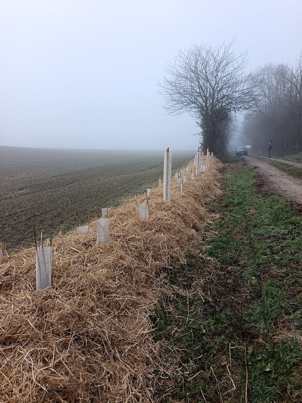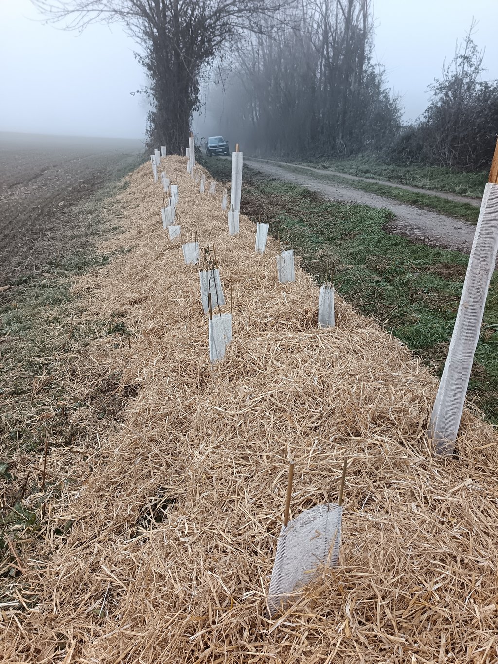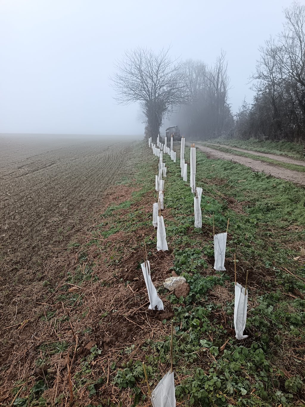 Une nouvelle haie de 100 arbustes vient d'être plantée par une dizaine de bénévoles ce matin sur le chemin de Berge. Cette plantation s'est réalisée dans le cadre du dispositif "Sensibilis'haie". Les plants sont fournis par la fédération nationale de chasse. Merci à tous les participants qui ont su braver le froid. Merci au propriétaire qui a accepté la plantation.