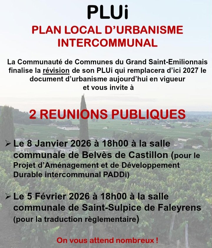Informations pour la révision du PLUI. Une Réunion publique aura lieu dans la salle communale "D. FENELON"
