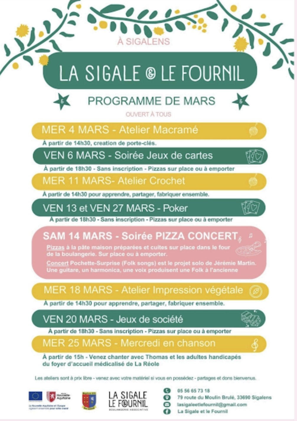 L'association La Sigale & le Fournil vous présente sa programmation Mars ! 🎊