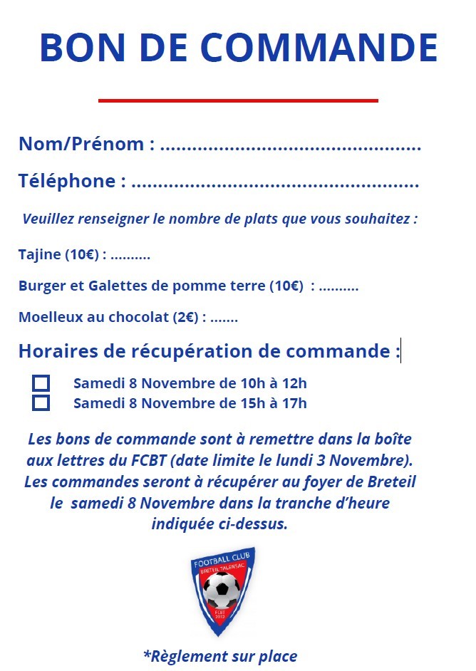 Les bons de commande sont à déposer dans la boîte aux lettres du FCBT (au foyer).