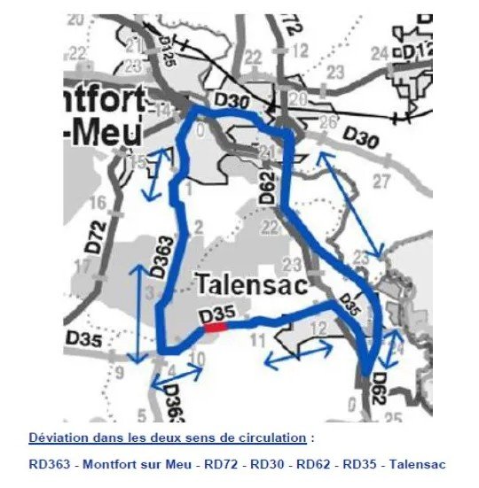 Une déviation est mise en place via Montfort-sur-Meu pendant toute la durée des travaux.