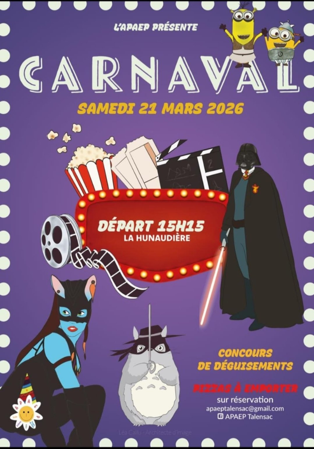 Nous vous attendons avec vos plus beaux déguisements à partir de 15 h 15 au parc de la Hunaudiére pour le défilé.