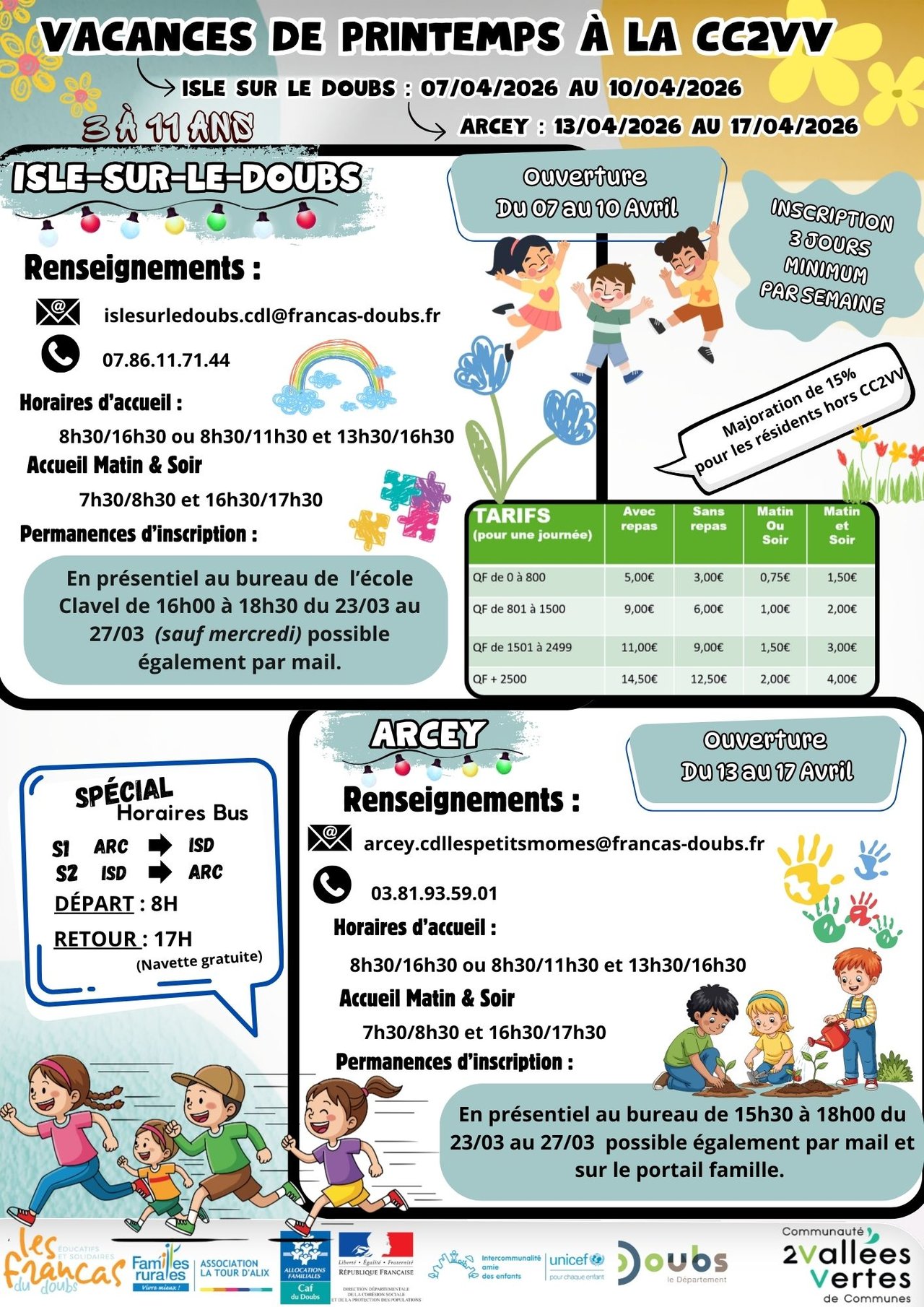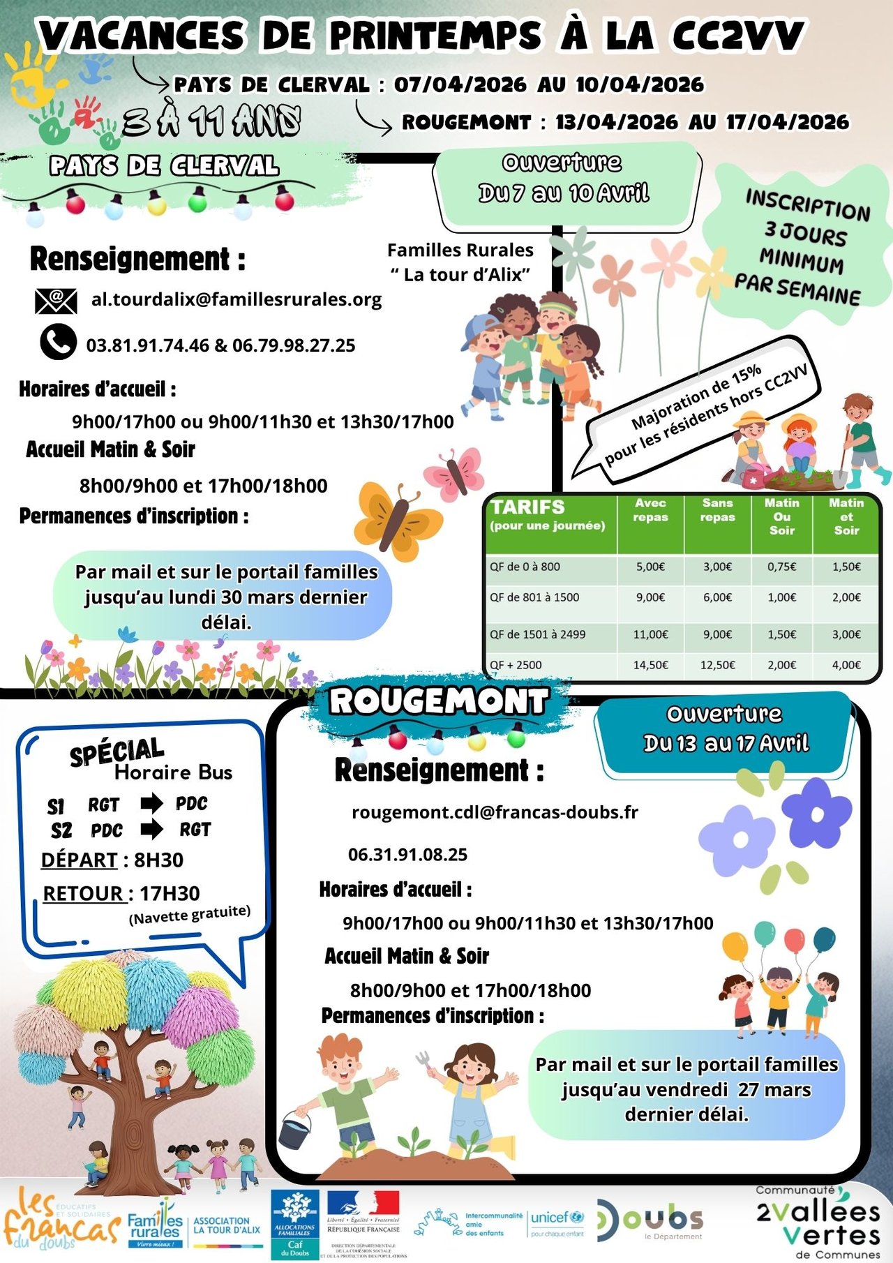 INSCRIPTIONS : VACANCES DE PRINTEMPS / 3-11 ANS