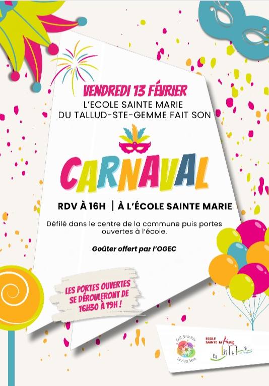 16h00 : Défilé des enfants déguisés dans le bourg puis portes ouvertes de l'école