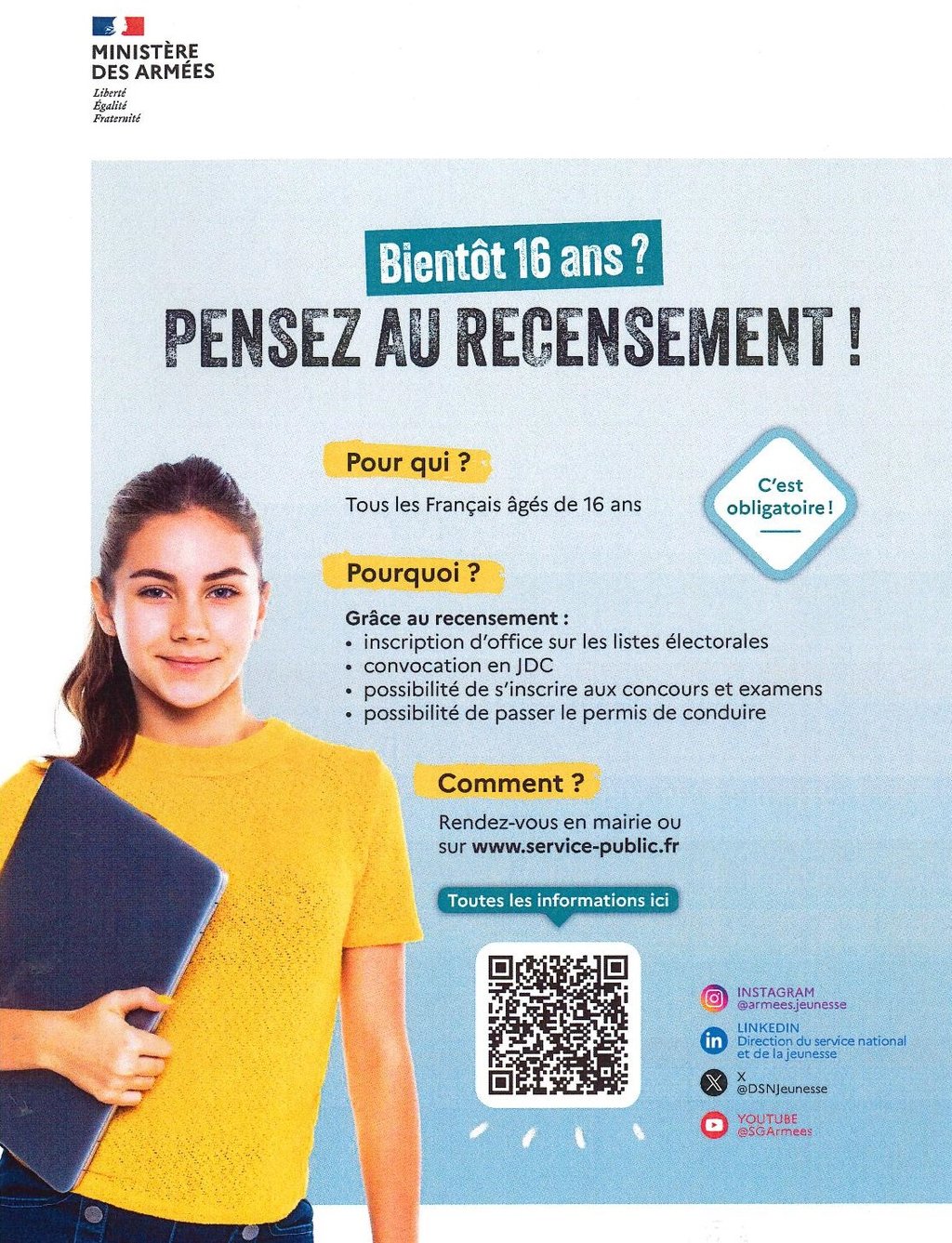 Tu vas bientôt avoir 16 ans ? Pense à te faire recenser auprès de ta mairie !