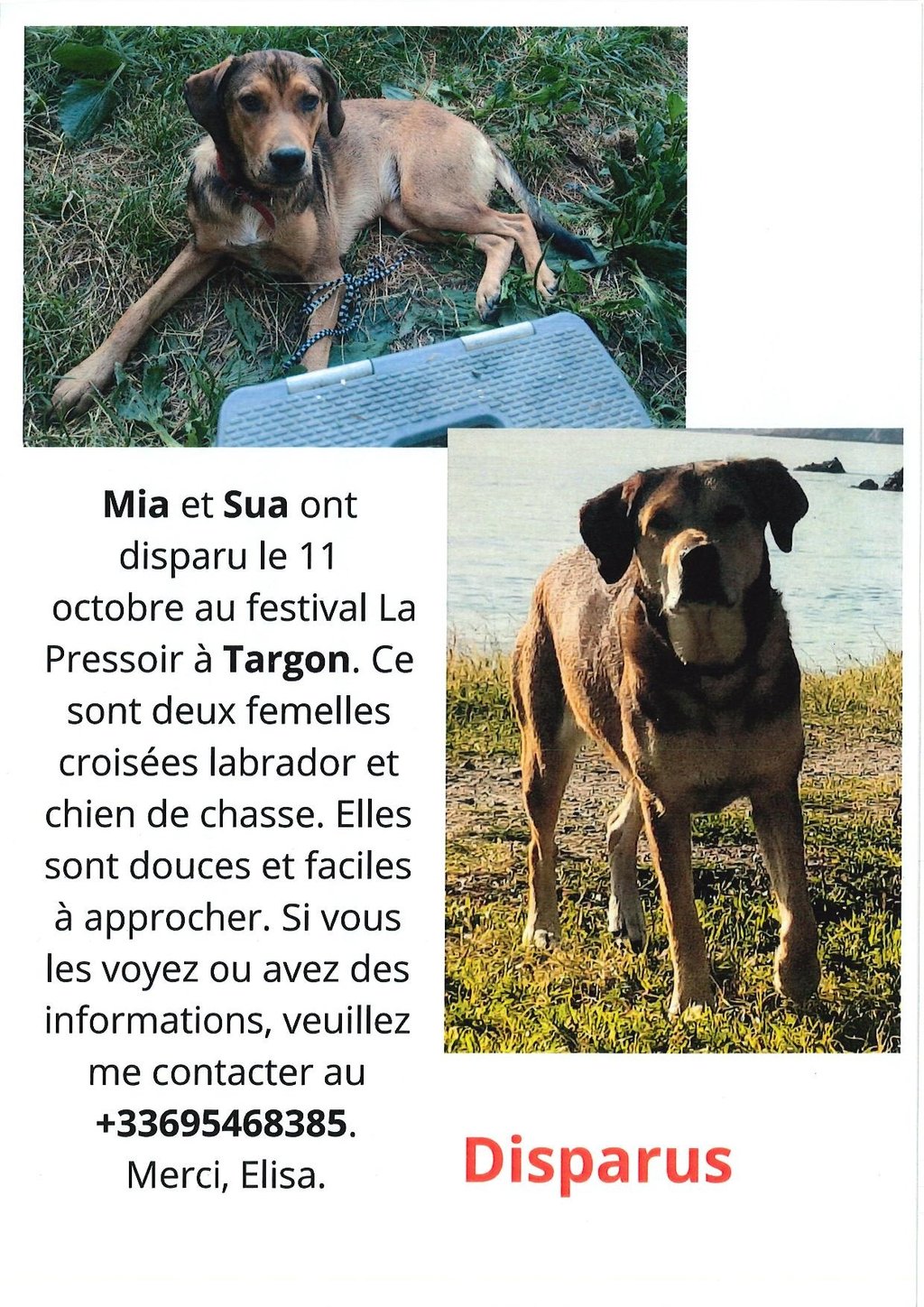 PERDU DEUX CHIENNES